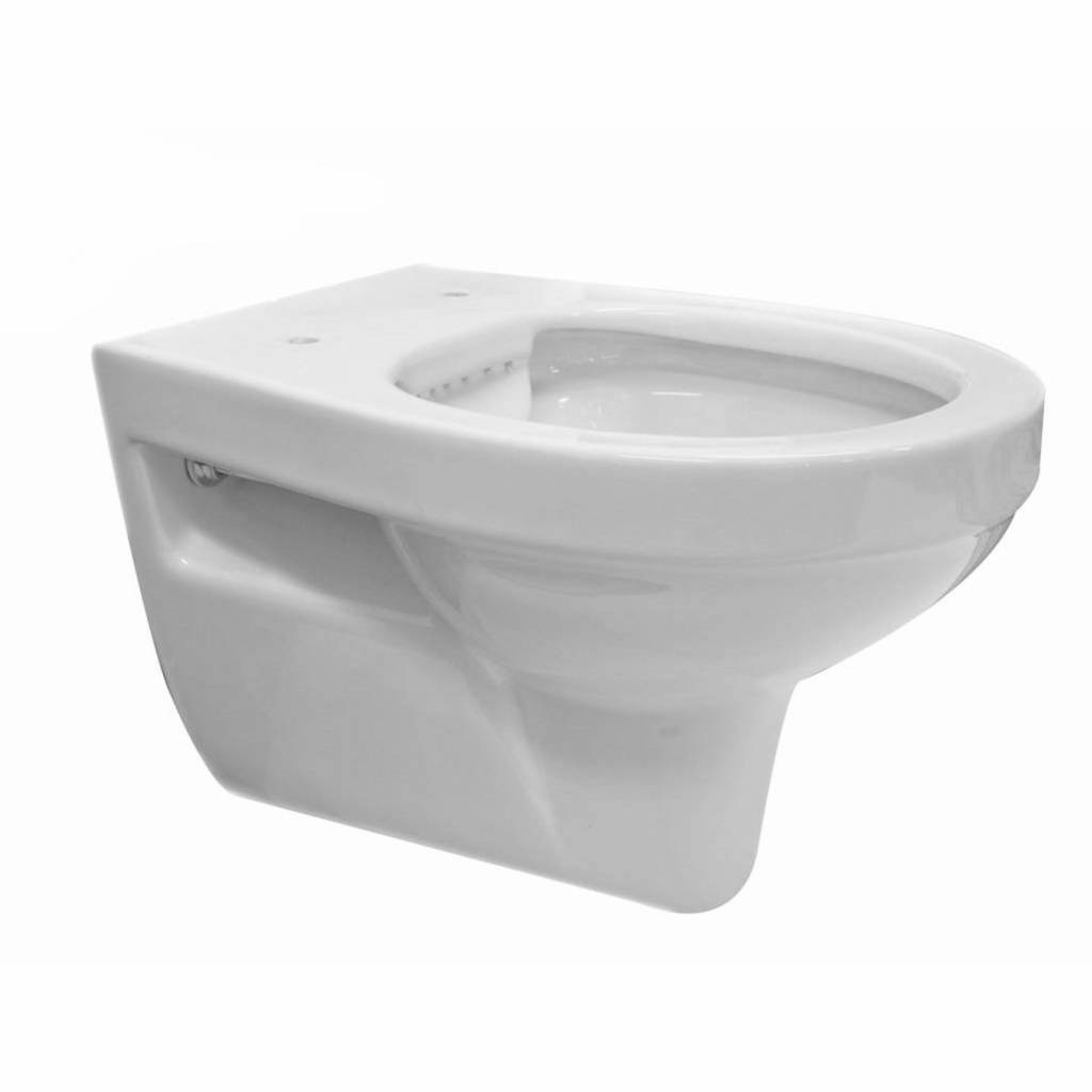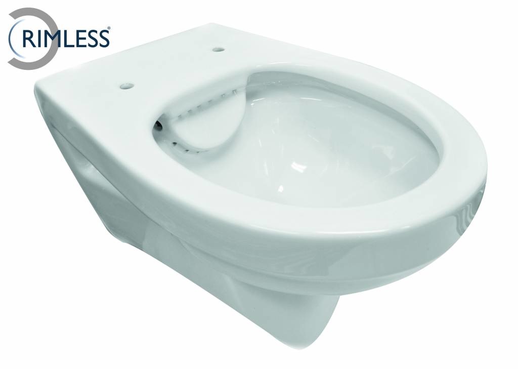De pot is Rimfree. Rimfree betekent eigenlijk dat de pot geen spoelrand heeft. Vaak hoopt er onder de spoelrand veel kalk en vuil op, maar dat heeft u met een Rimfree toilet niet. Er zit een mooi gevormde waterverdeler verwerkt aan de achterkant dat zorgt dat het spoelwater direct in de afvoer komt.
