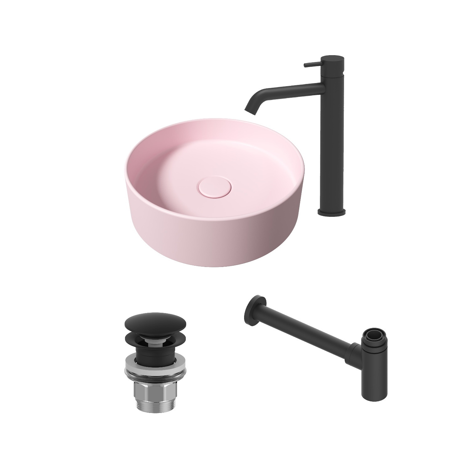 U heeft in deze set keuze uit maar liefst vier kleuren wastafelkranen, clickwastes en sifons. In de wastafel zit geen overloop verwerkt. Er wordt een bijpassende afvoerplug bij geleverd in dezelfde kleur als het keramiek. U kunt in deze set er ook voor kiezen om tegen een meerprijs een clickwaste toe te voegen in dezelfde kleur als uw gekozen kraan en sifon.
