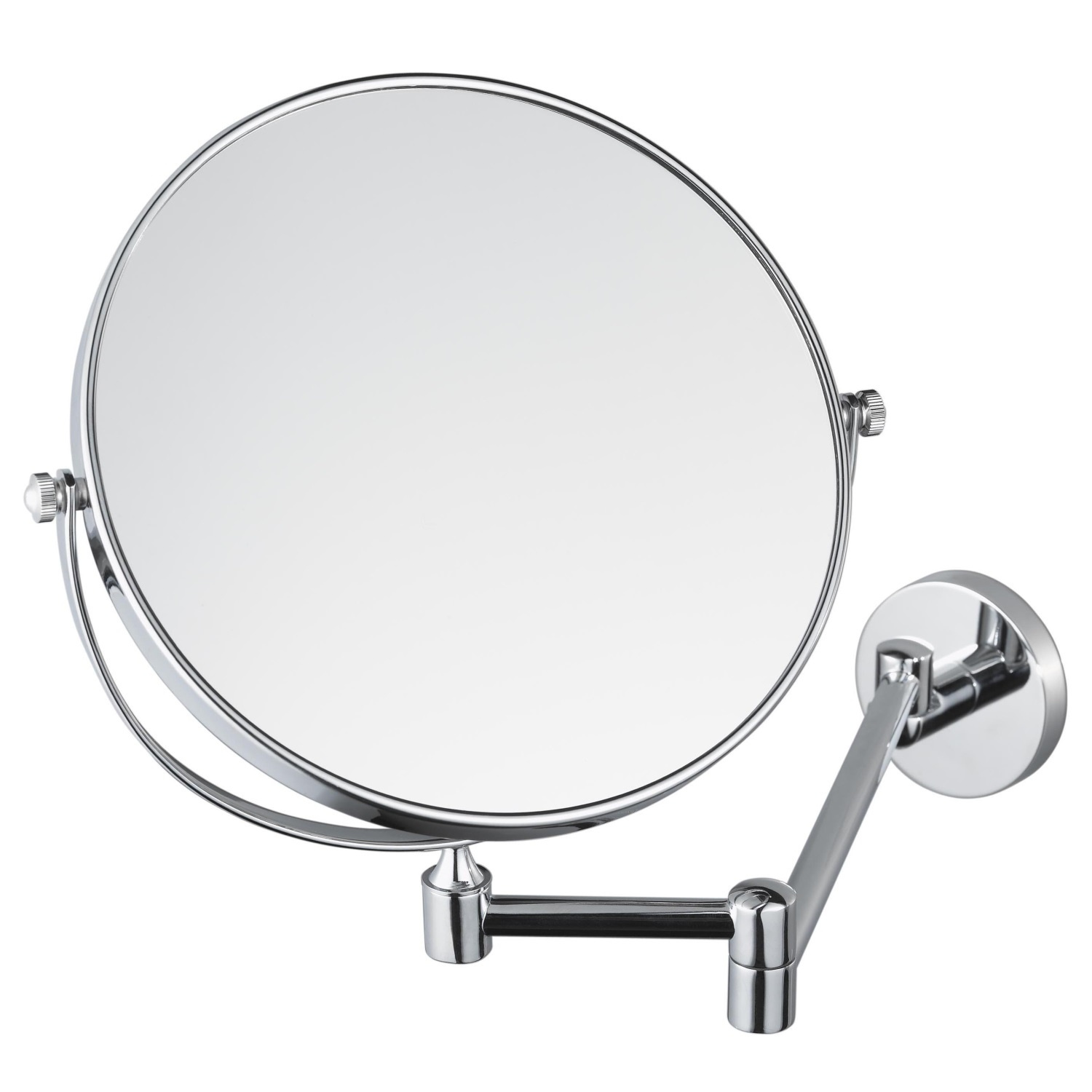 Deze spiegel (met een doorsnede van 20cm) heeft een handige zwenkarm. U kunt hem daardoor nog makkelijker gebruiken, zelfs met meerdere personen tegelijk. En als u klaar bent, klapt u hem weer netjes in: strak tegen de muur. De spiegel heeft tevens aan 1 zijde een 3x vergrotend spiegelglas.