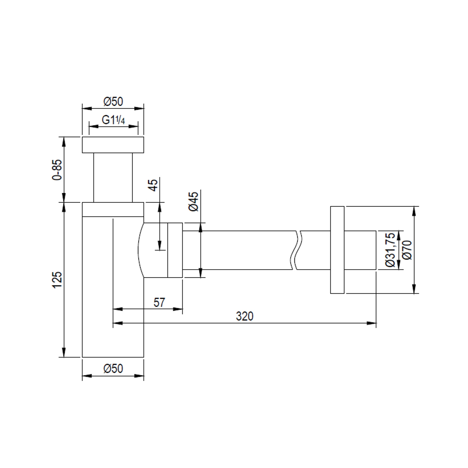 De sifon is 12,5 cm hoog en zijn lengte is 32 cm. De afmeting van het afvoergat is 5/4 inch.