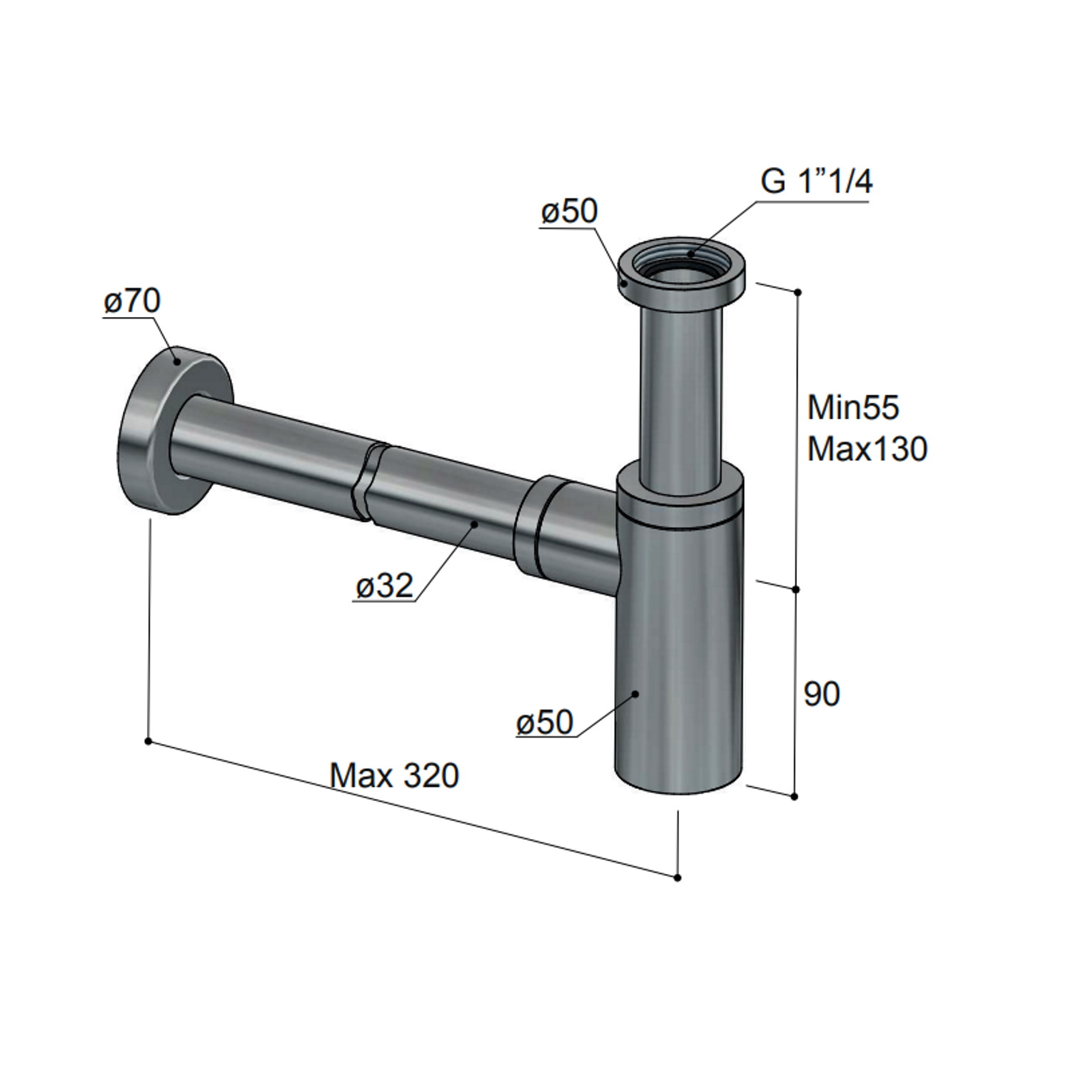 Het is maximaal 32 cm diep, en is ook in hoogte verstelbaar. De draadaansluiting is 1Inch1/4 en de sifon komt inclusief rozet voor een mooie afwerking op de muur. Met deze sifon zorgt u voor een strakke en stoere uitstraling. U krijgt 10 jaar garantie op deze sifon.