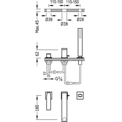 Slim Badmengkraan voor randset met handdouche antikalk (202.639.01). · Wateropbrengst: 3 bar – 13 l/m.