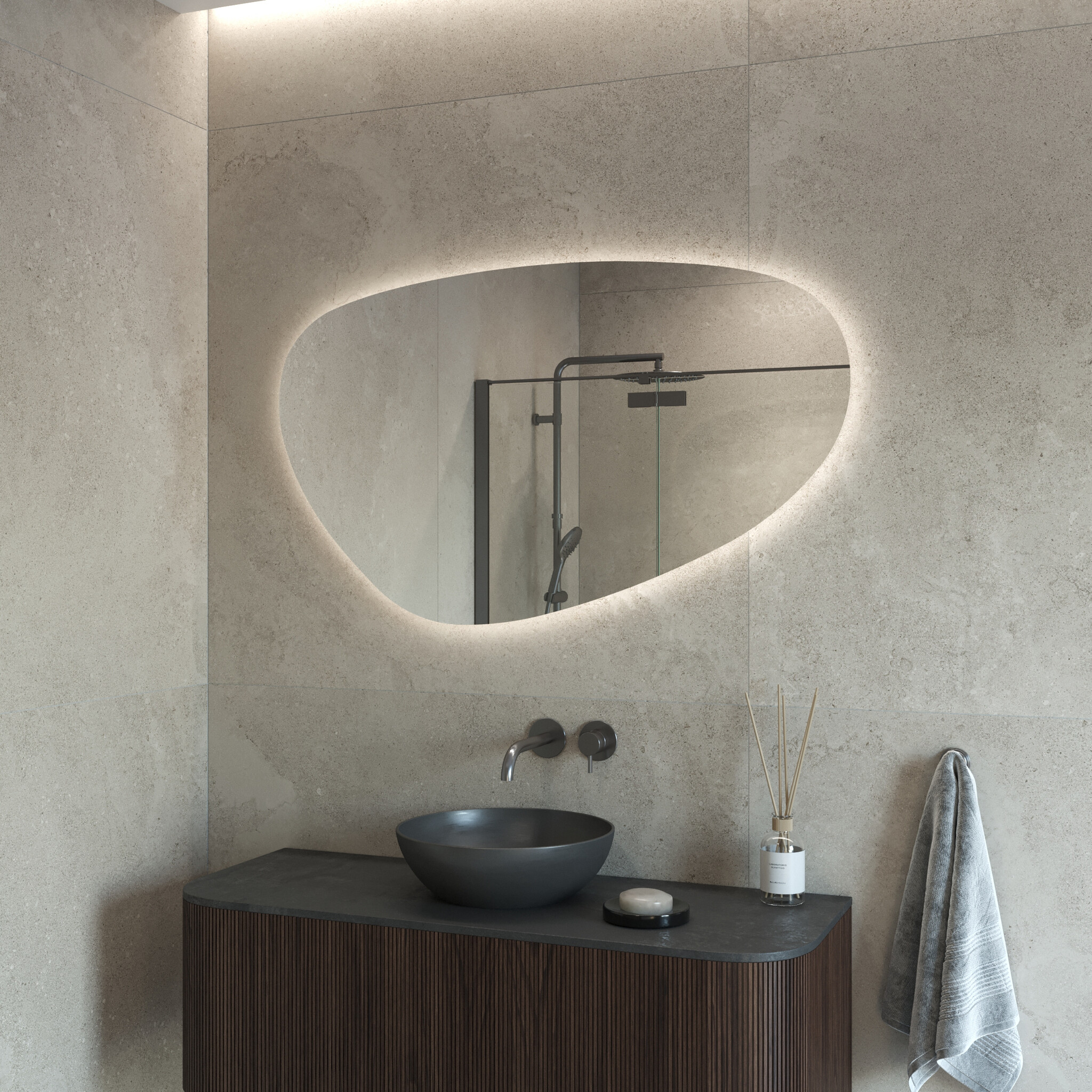 Deze Organischvormige spiegel is van het merk bws en is een absolute aanwinst voor uw badkamer. De spiegel komt uit de serie archa en het fijne van deze spiegel is dat het een bijzondere vorm heeft en u extra verlichting in uw badkamer krijgt. De spiegel beschikt over "backlight" verlichting, wat inhoudt dat de verlichting over de rand van de spiegel en op de muur schijnt.