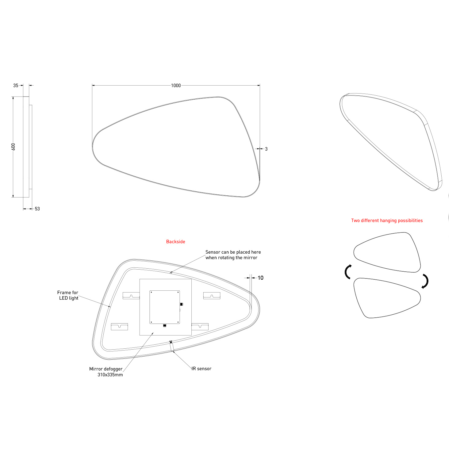 De LED verlichting veranderd van kleurtemperatuur en is dimbaar. De kleuren wisselen tussen 3000 & 6000 Kelvin. Tevens is deze prachtige organische spiegel voorzien van spiegelverwarming, op die manier hoeft u na het douchen niet te wachten om de spiegel te kunnen gebruiken. De spiegel kan aangesloten worden op de normale netstroom, wel is aan te raden om er een aparte schakelaar tussen te zetten voor verlichting en verwarming, dit ivm het doorbranden van de spiegelverwarming.