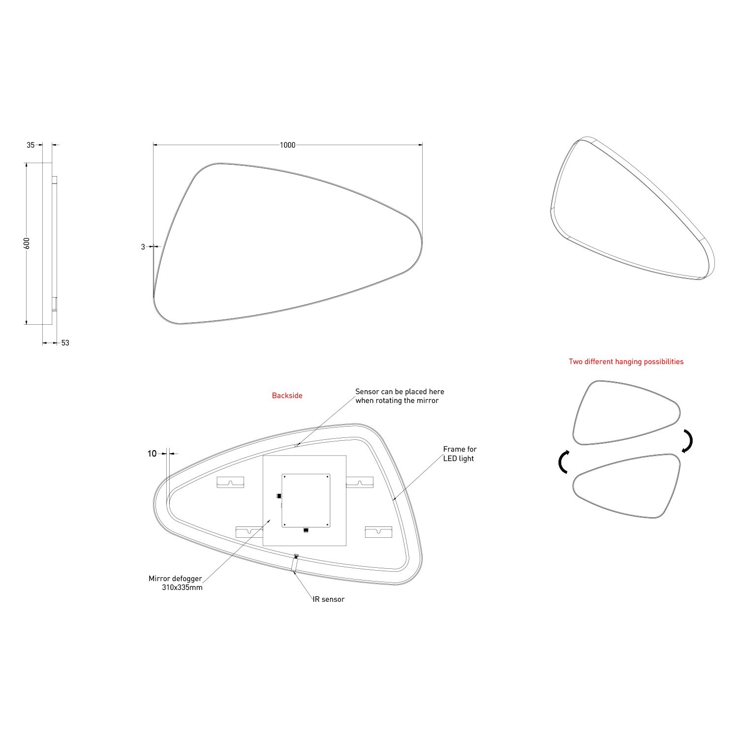 De LED verlichting veranderd van kleurtemperatuur en is dimbaar. De kleuren wisselen tussen 3000 & 6000 Kelvin. Tevens is deze prachtige organische spiegel voorzien van spiegelverwarming, op die manier hoeft u na het douchen niet te wachten om de spiegel te kunnen gebruiken. De spiegel kan aangesloten worden op de normale netstroom, wel is aan te raden om er een aparte schakelaar tussen te zetten voor verlichting en verwarming, dit ivm het doorbranden van de spiegelverwarming.