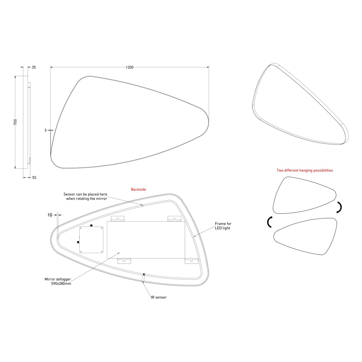 De LED verlichting veranderd van kleurtemperatuur en is dimbaar. De kleuren wisselen tussen 3000 & 6000 Kelvin. Tevens is deze prachtige organische spiegel voorzien van spiegelverwarming, op die manier hoeft u na het douchen niet te wachten om de spiegel te kunnen gebruiken. De spiegel kan aangesloten worden op de normale netstroom, wel is aan te raden om er een aparte schakelaar tussen te zetten voor verlichting en verwarming, dit ivm het doorbranden van de spiegelverwarming.