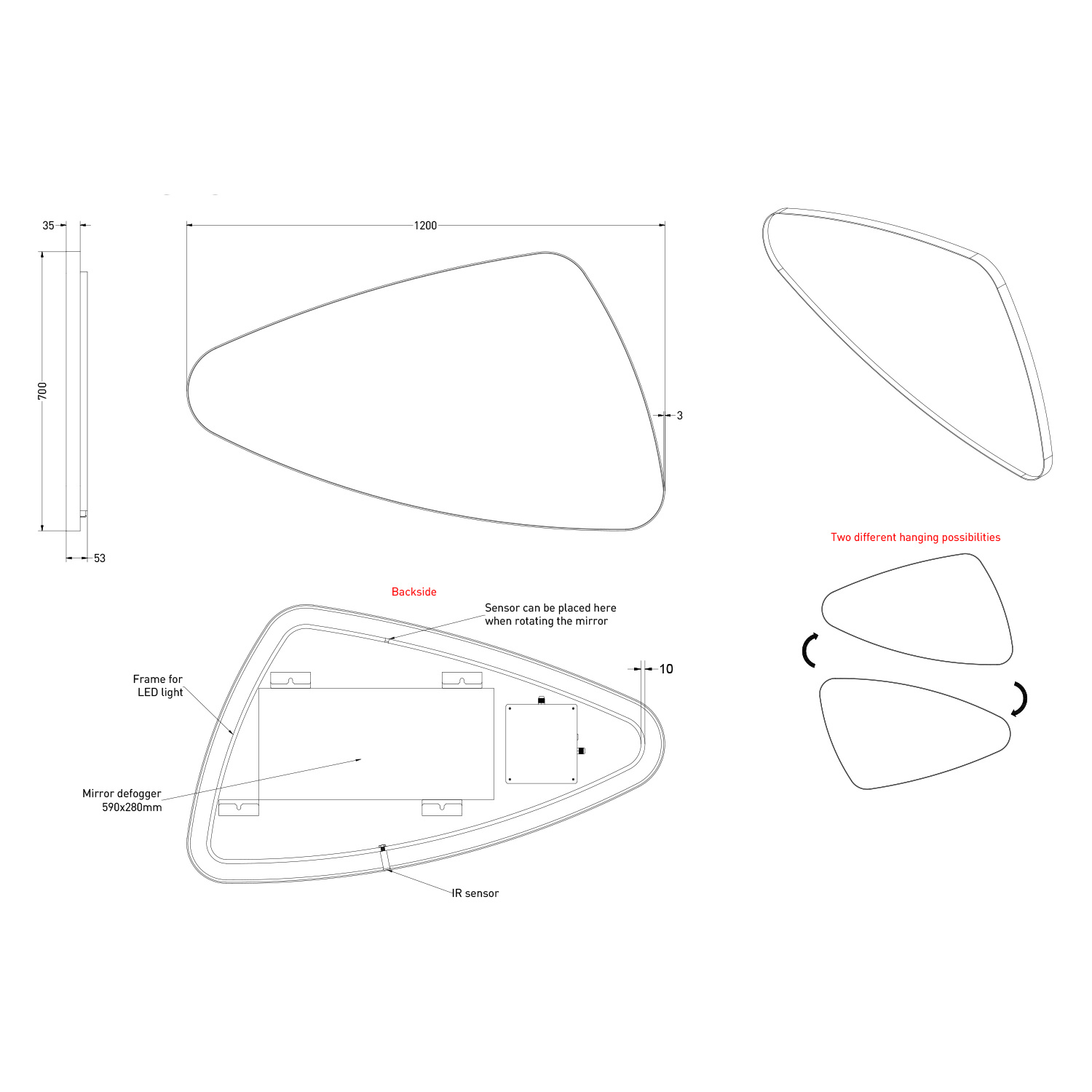 De LED verlichting veranderd van kleurtemperatuur en is dimbaar. De kleuren wisselen tussen 3000 & 6000 Kelvin. Tevens is deze prachtige organische spiegel voorzien van spiegelverwarming, op die manier hoeft u na het douchen niet te wachten om de spiegel te kunnen gebruiken. De spiegel kan aangesloten worden op de normale netstroom, wel is aan te raden om er een aparte schakelaar tussen te zetten voor verlichting en verwarming, dit ivm het doorbranden van de spiegelverwarming.