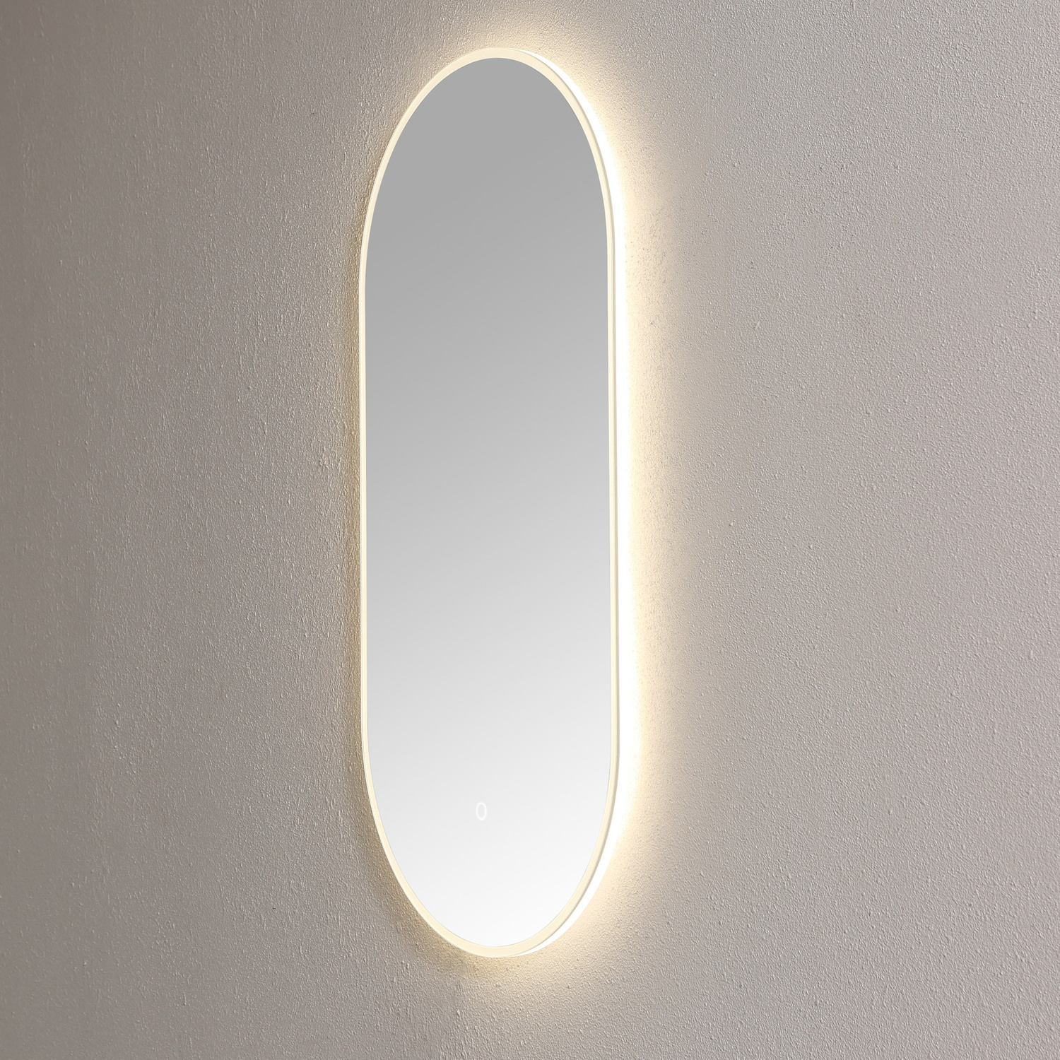 Deze spiegel van Sanilux heeft een ovale vorm met een omranding. De spiegel heeft een afmeting van 90cm hoog en 45 cm breed. De omranding is 3 cm breed en is gemaakt van aluminium. De spiegel is niet voorzien van een schakelaar, radio of bluetooth. Maar dit zijn gelukkig niet de belangrijkste punten. Hij is namelijk wel voorzien van een touch sensor, de kleuren zijn instelbaar, hij is dimbaar en natuurlijk voorzien van spiegelverwarming. Wat wilt u nog meer?!<