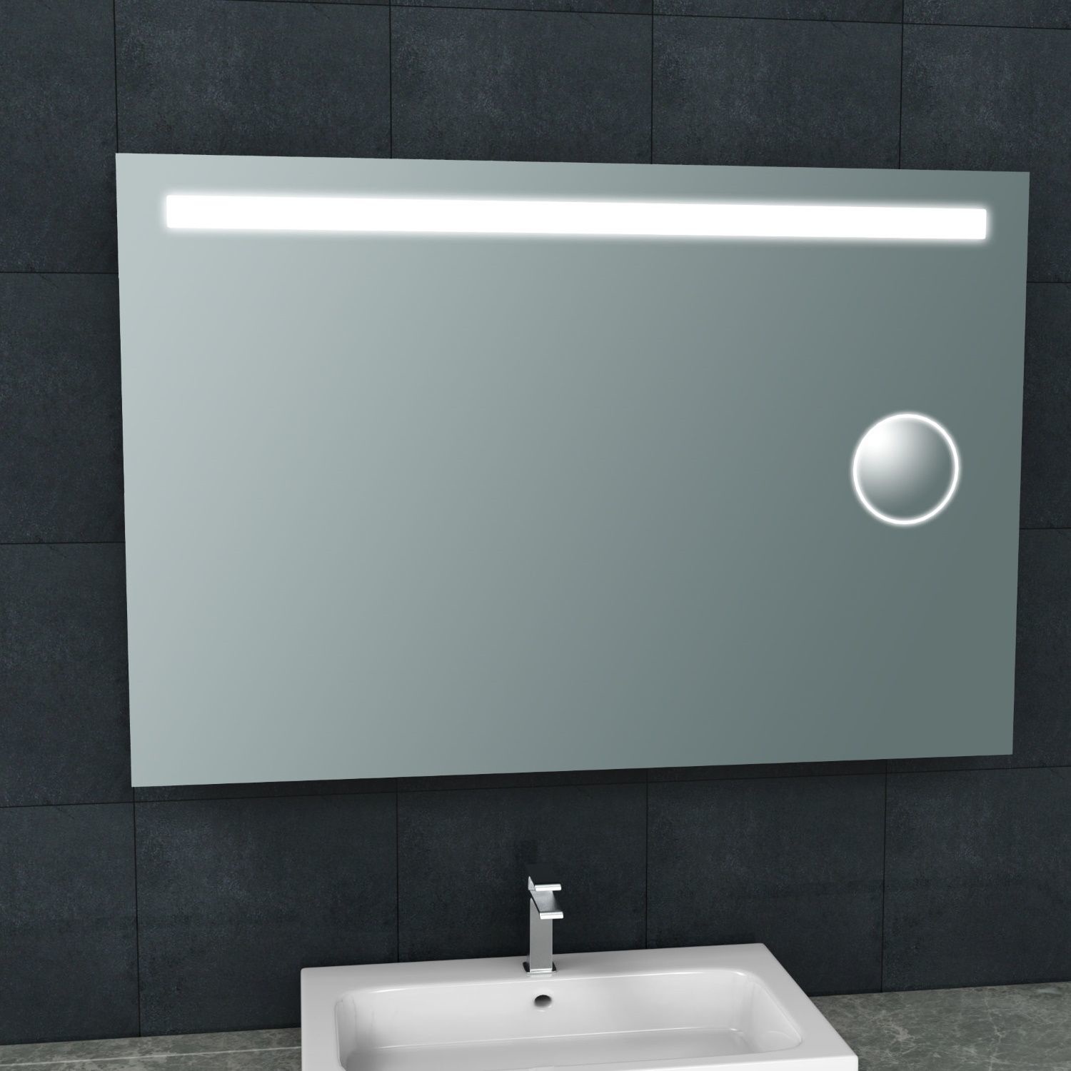 De wandspiegel van Wiesbaden heeft een luxe uitstraling door de LED verlichting en zijn hoge maat van 80cm.
