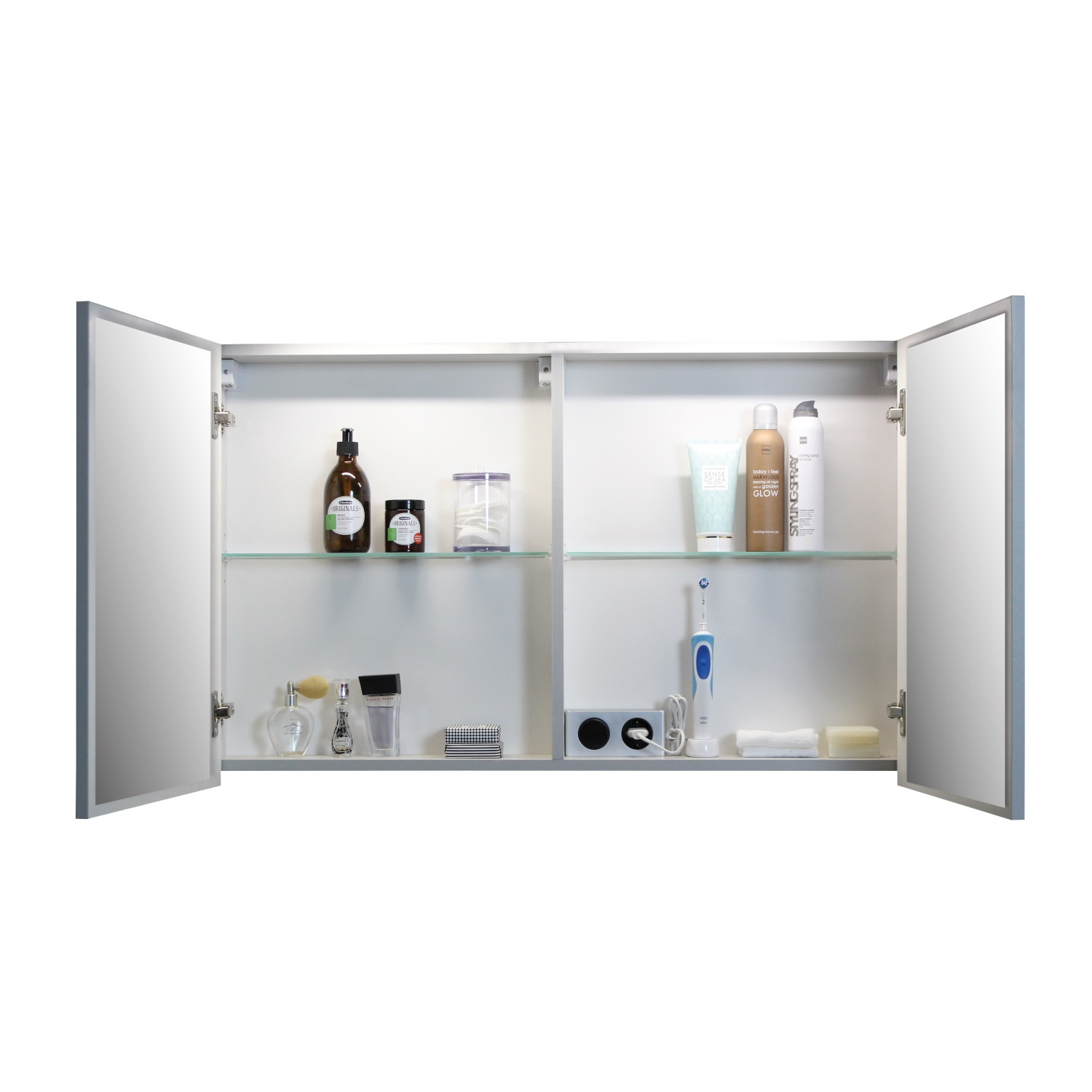Deze spiegelkast is uitgerust met 1 deur van 60 cm breed. Op deze spiegelkast kunt u geen spiegelverwarming toevoegen aangezien het geen platte spiegel is en de binnenkant van de spiegelkast ook bespiegeld is. Bij deze spiegelkast wordt 1 glazen planchet geleverd die u in de spiegelkast kunt plaatsen. Er zit ook een stopcontact doos in de spiegelkast, hierdoor kunt u de föhn of welke haartool u maar wilt gebruiken aansluiten.