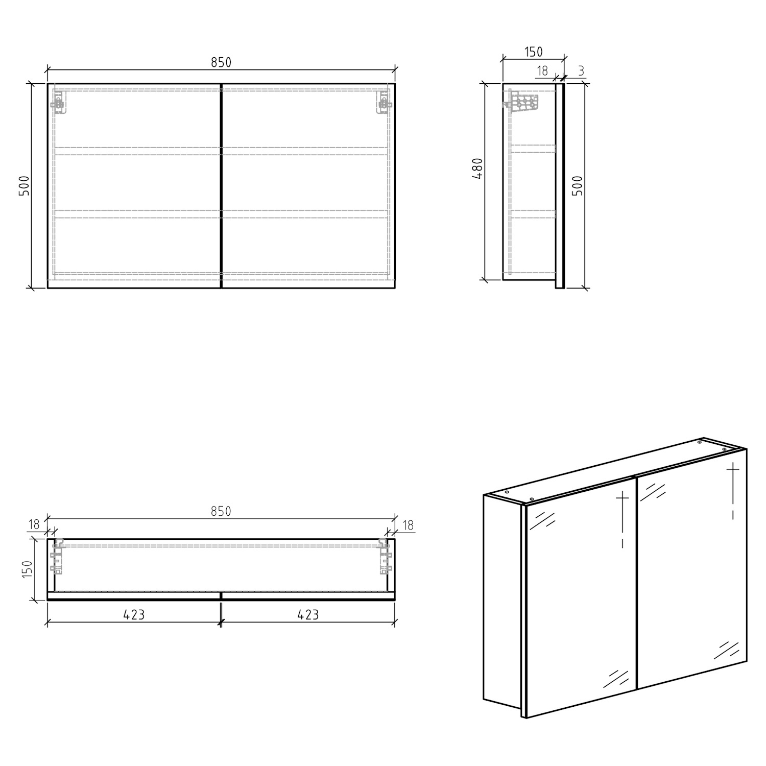De spiegelkast is voorzien van twee deuren met daarachter twee verstelbare plankjes. Hierdoor kunt u met gemak uw veel gebruikte toiletartikelen kwijt, zoals een deodorant, parfum of een haarborstel. De spiegel heeft een breedte van 85 cm, een diepte van 15 cm en een hoogte van 50 cm.