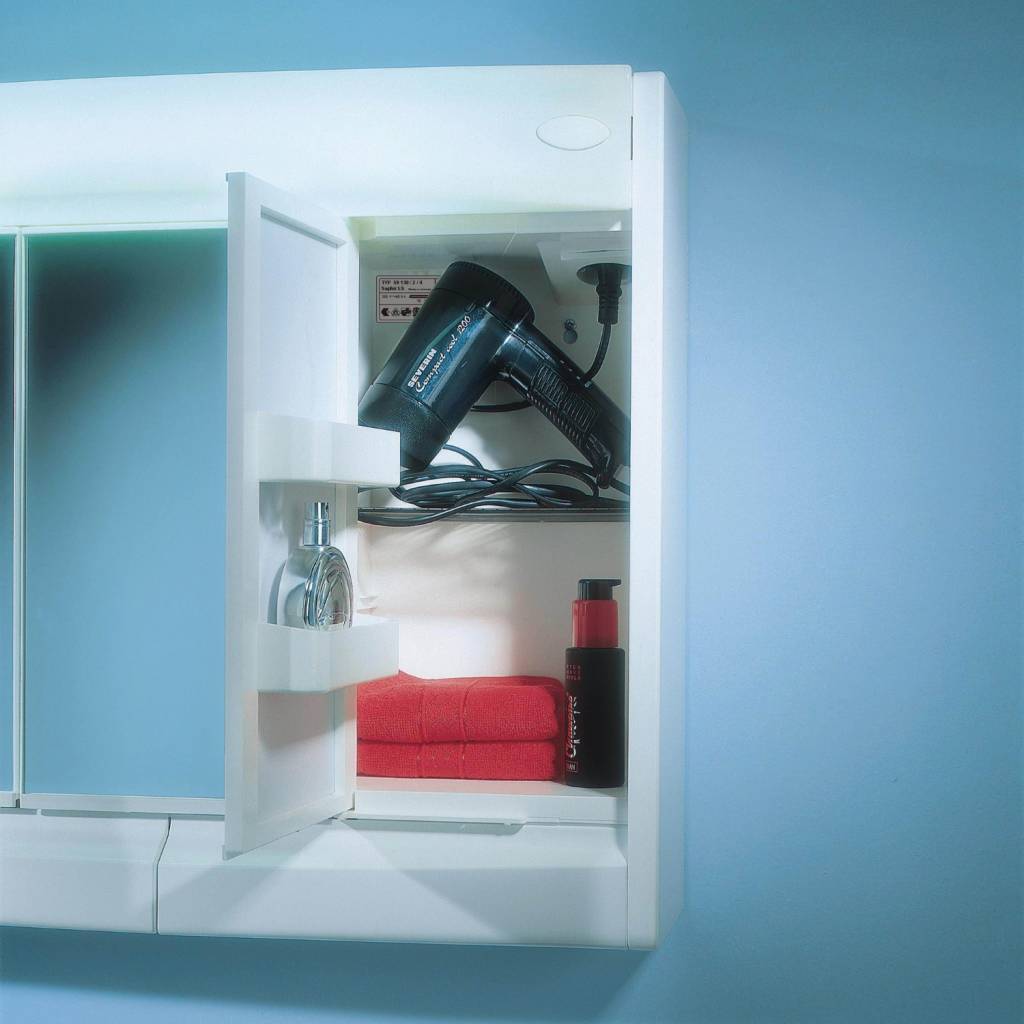 De spiegelkast is voorzien van verlichting waarbij er een 15Watt TL-lamp wordt meegeleverd. Ook heeft de spiegelkast een stopcontact om binnen handbereik gebruikt te maken van uw elektrische apparaten zoals een föhn of trimmer.