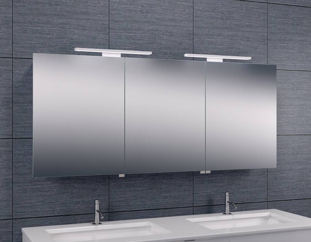 De luxe spiegelkast is door de led verlichting is heel zuinig. De karakteristieken van de toegepaste leds in de lamp bepalen samen met de stralingshoek, de lichtstroom, lichtsterkte en kleurweergave wat een luxe uitstraling geeft in uw badkamer. De spiegels zitten zowel aan de binnen en buitenkant van de deuren.