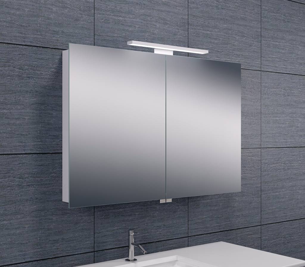 De luxe spiegelkast is door de led verlichting is heel zuinig. De karakteristieken van de toegepaste leds in de lamp bepalen samen met de stralingshoek, de lichtstroom, lichtsterkte en kleurweergave wat een luxe uitstraling geeft in uw badkamer. De spiegels zitten zowel aan de binnen en buitenkant van de deuren.
