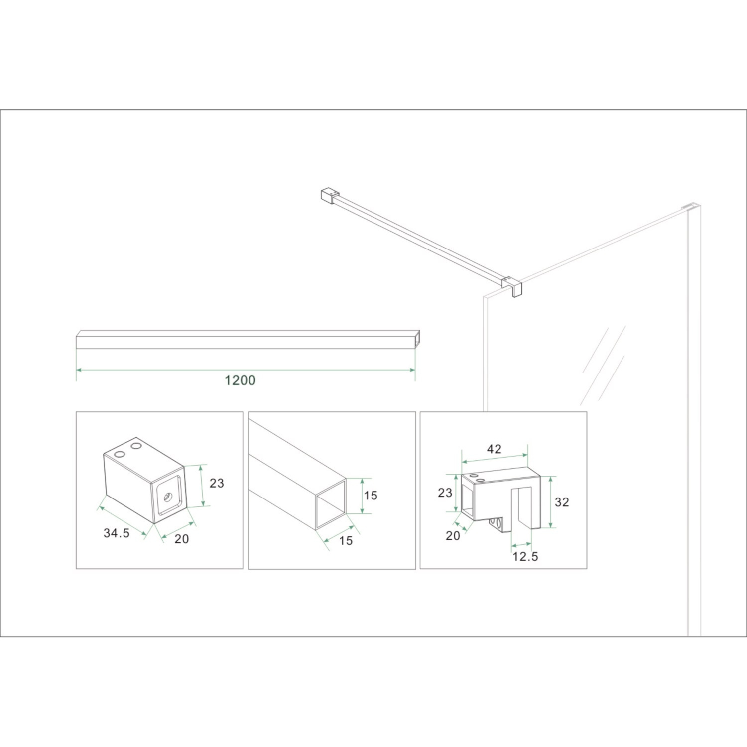 U kan de glas koppeling en de muur koppeling los monteren van de stang. U kan de stang dan afzagen naar elke gewenste afmeting, en de koppeling weer monteren.