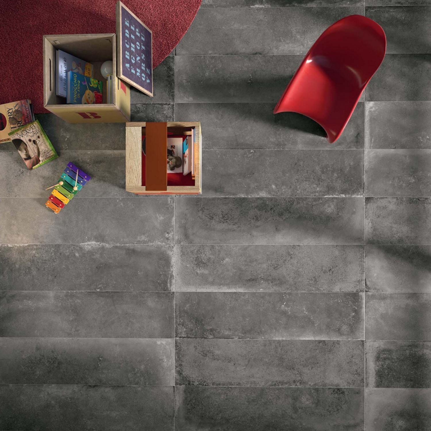 De stroken van de Flaviker Bachstage Graphite lijn hebben 3 verschillende afmetingen: 40x60, 80x60 en 120x60 cm. Dit zijn vrij grote stroken die perfect uitkomen in een grote ruimte. Omdat de tegels een verschillende breedtemaat hebben, brengt het sfeer in de ruimte. Stroken zijn vaak bedoelt voor aan de wand, maar dit zijn speciale lengtematen voor op de vloer.