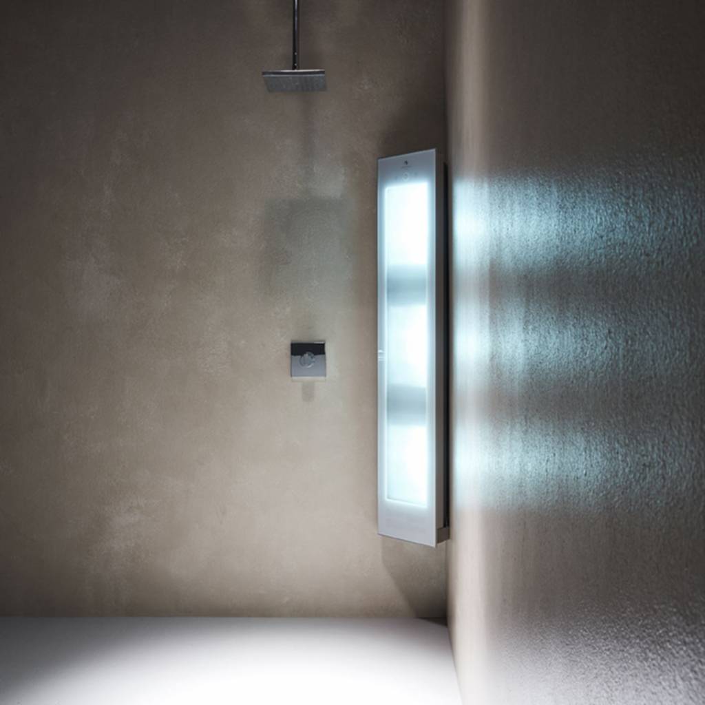 De Combi White van Sunshower is een opbouwapparaat voor het gehele lichaam. Dit is een opbouw model dat u in de hoek van de badkamer zult plaatsen. Dit model beschikt zowel over UV- en infraroodlampen. Met de Combi White heeft u dus twee functies; een infraroodfunctie en een UV-functie. De Combi White heeft daarom ook drie UV-lampen en vier kortegolf infraroodlampen van ieder 500 watt. Net als alle andere Sunshower modellen is de Combi White eenvoudig te bieden door middel van het touchscreen, hiermee zet u de Sunshower met gemak aan of uit. Een enkele sessie met de Sunshower zal ongeveer 10 minuten duren, hierna heeft de Sunshower 4 minuten nodig om af te koelen. U kunt tijdens de sessie er wel voor kiezen deze eerder te beëindigen. Let bij de installatie wel op; U zult een rechte hoek nodig hebbne met ongeveer 30 cm vrije ruimte daarnaast zult u de Combi White niet kunnen combineren met een stoomcabine.