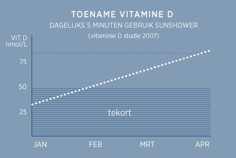 Zonlicht is belangrijk voor ons allemaal, voor de algemene gezondheid en voor de aanmaak van vitamine D. Echter moet dit zonlicht wel goed gedoseerd worden, hier zorgt de Combi White ook voor. Met de UV-lichtfunctie stimuleert u de aanmaak van vitamine D, dit is de enige vitamine die het lichaam zelf aanmaakt. Vitamine D is essentieël voor uw weerstand, behoud van de gezondheid en sterke botten. Daarnaast zult u zich met een gezonde dosis vitamine D energieker voelen. Met de UV-lichtfunctie van de Combi White zult u binnen 3 maanden op een gezond vitamine D niveau zitten. Daarnaast houd u er ook nog eens een mooi zomers kleurtje aan over!