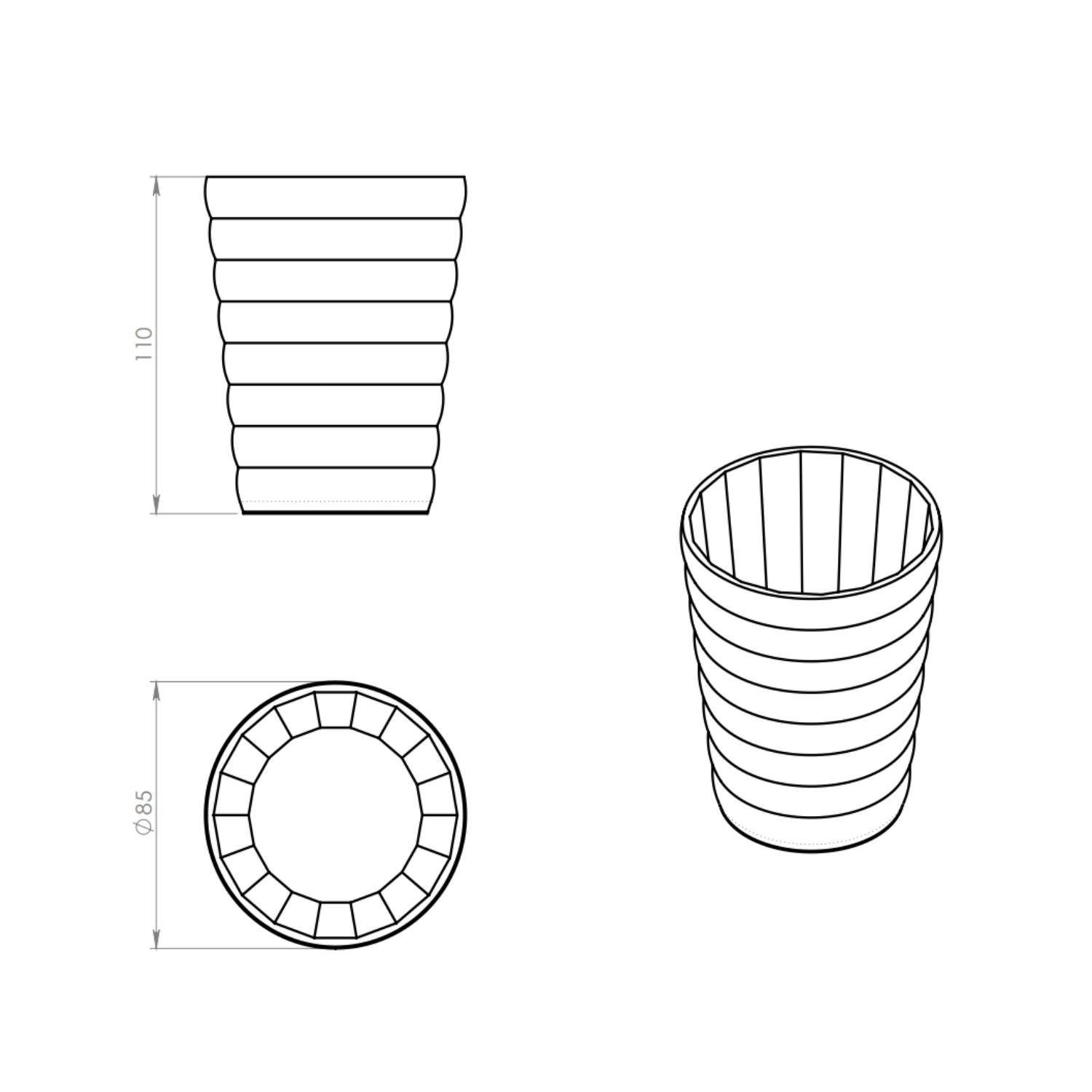 De tandenborstelhouder heeft een hoogte van 11 cm, een breedte van 8.5 cm en een diepte van 8.5 cm.