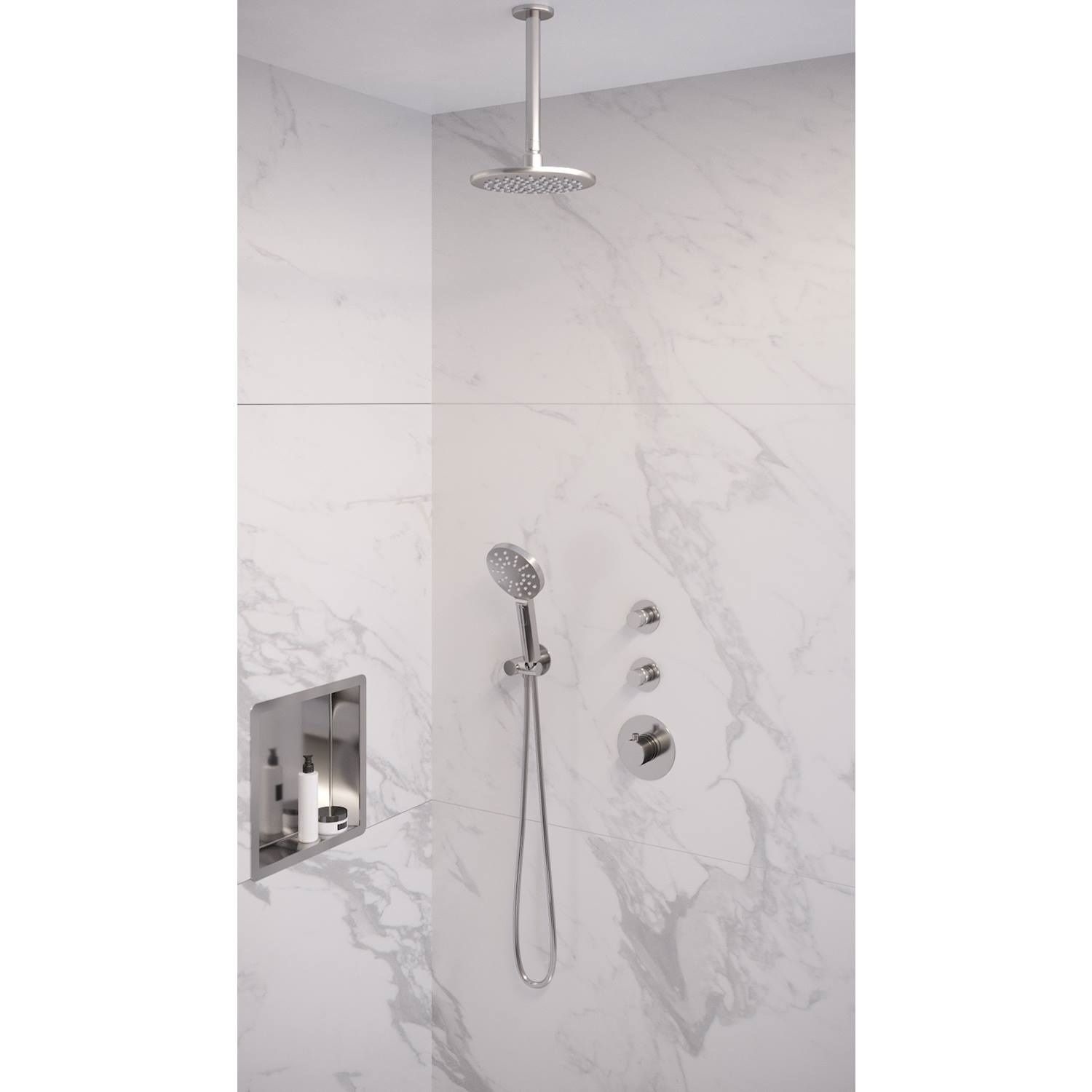 De Brauer inbouwkraan 6.5cm inbouwdiepte met 2 stopkranen ronde knoppen en ronde rozetten.