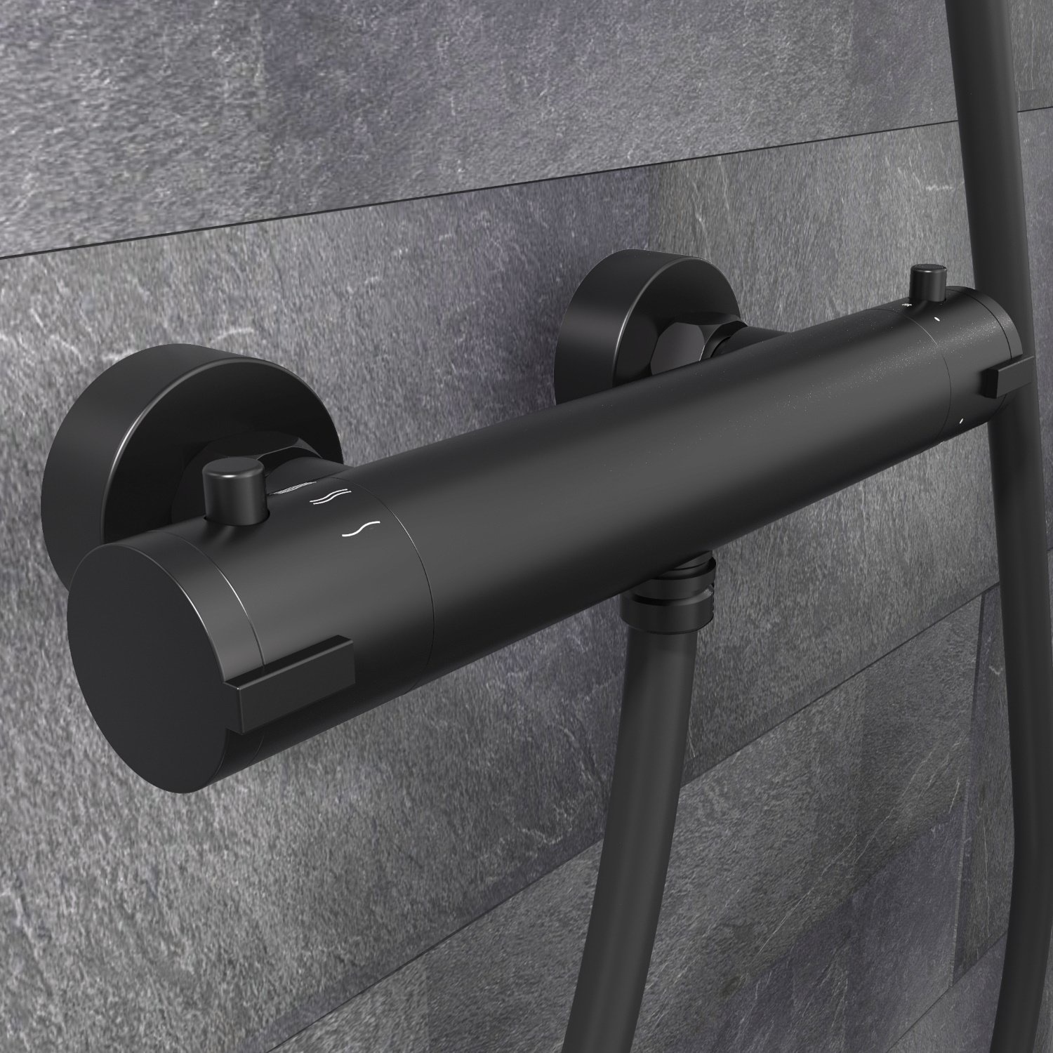 De London thermostatische douchekraan van het merk Schutte is gemaakt van messing en heeft een mat zwarte finish. De douchekraan is voorzien van een ingebouwde thermostaat en voorzien van een safestop bij 38 graden. Door de thermostaat in de kraan blijft het door u ingestelde temperatuur van het water exact gelijk. Via thermostatische kleppen wordt koud en warm water gemengd waardoor het water een constante temperatuur houdt.
