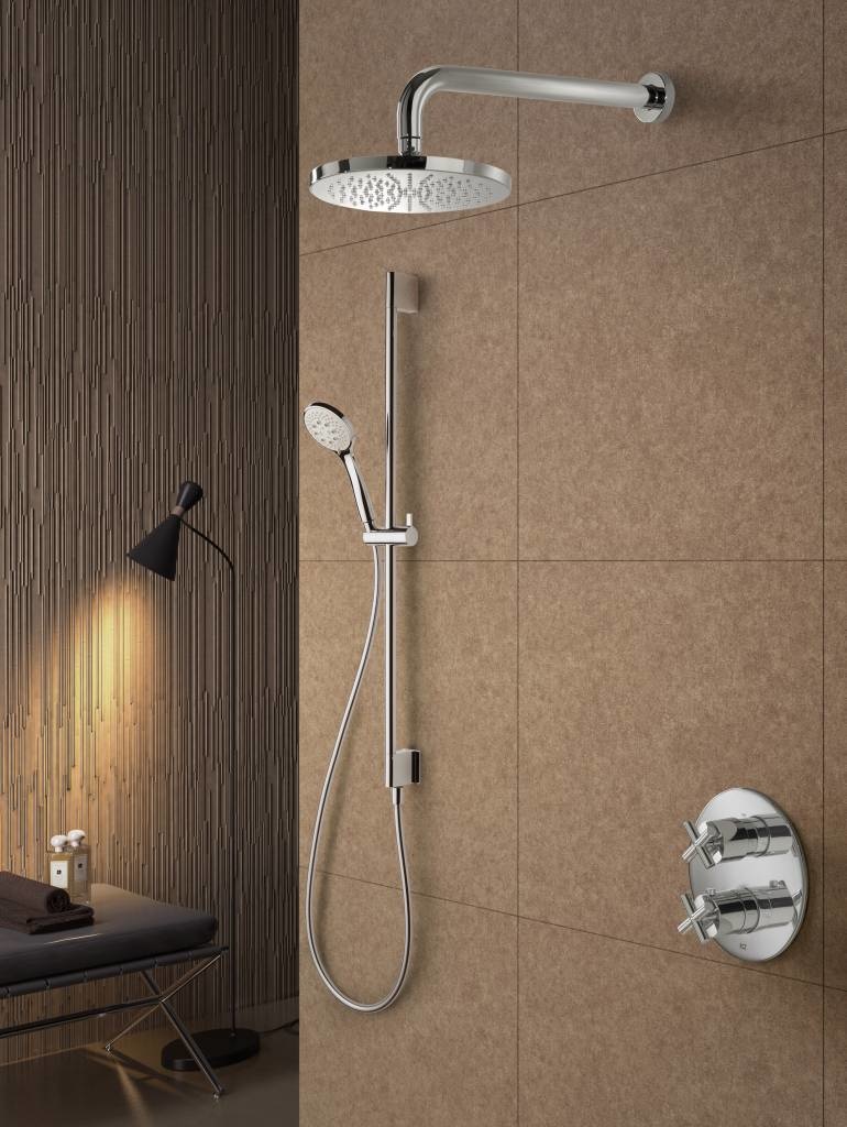 Chap thermostatische inbouw douche set met twee weg stop omstel. Bij deze douche set heeft u een selectie uit verschillende handdouches en hoofddouches. Ook kunt u kiezen uit verschillende soorten bevestiging van de hand- en hoofddouche. De regendouche sets van Hotbath beschikken ook over een EcoAir en Shower Power Systeem, hierdoor bespaard u water.