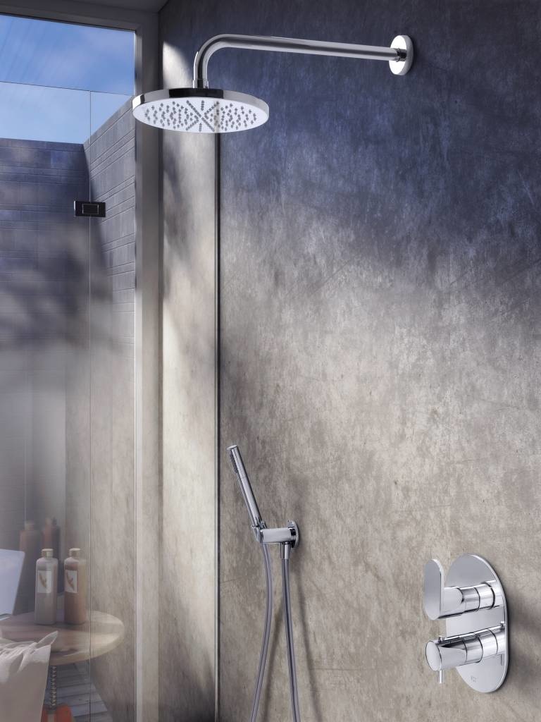 Friendo thermostatische inbouw douche set met een twee weg stop omstel. Bij deze set heeft u keuze uit verschillende handdouches, hoofddouches, een wandarm of plafondbuis en een handdouchehouder of glijstang. Met de douche sets van Hotbath heeft u ook een waterbesparende regendouche, dit komt dankzij het EcoAir en Shower Power System. Hieronder kunt u meer lezen over deze systemen. Zie de documenten in de specificaties.