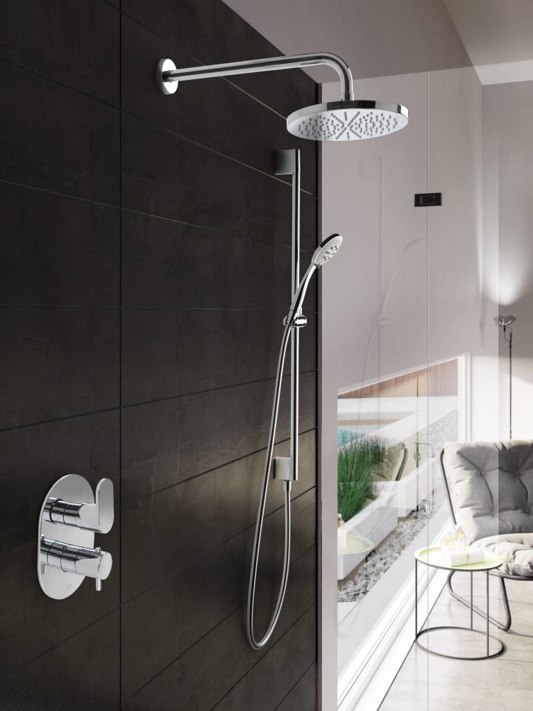 Friendo thermostatische inbouw douche set met een twee weg stop omstel. Bij deze set heeft u keuze uit verschillende handdouches, hoofddouches, een wandarm of plafondbuis en een handdouchehouder of glijstang. Met de douche sets van Hotbath heeft u ook een waterbesparende regendouche, dit komt dankzij het EcoAir en Shower Power System. Hieronder kunt u meer lezen over deze systemen. Zie de documenten in de specificaties.
