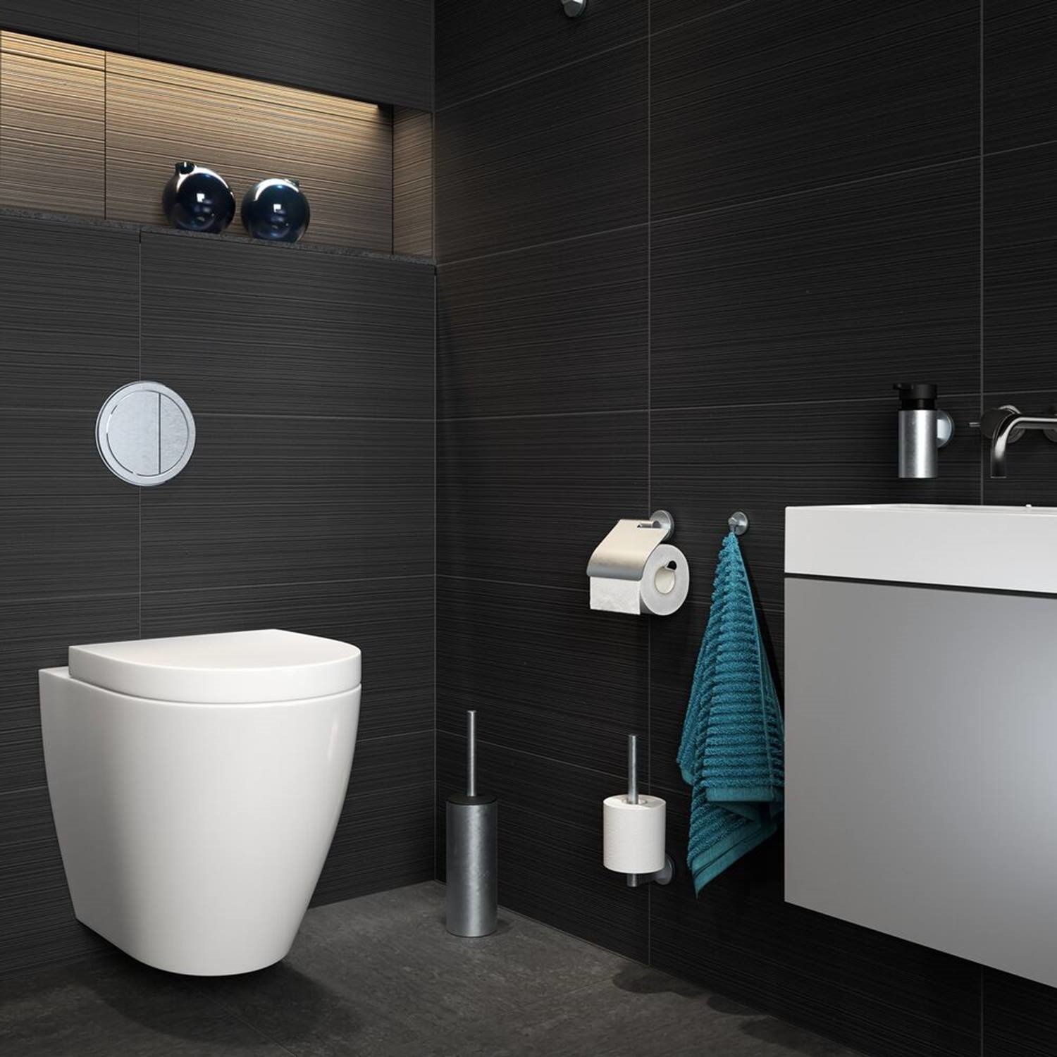 De Tiger Noon toiletborstel met houder wordt geleverd in de kleur RVS geborsteld en biedt een optimaal gebruikersgemak. Zeker wanneer het om hygiëne gaat, is het belangrijk dat het goed gebeurt. De borstelpot is over de hele lengte voorzien van kunststof materiaal, en kan goed afgesloten worden met de flexibele deksel die aan de toiletborstel zit. De borstelhouder heeft een afmeting van 9x9x38 cm, en weegt 805 gram. De Noon serie uit de premium collectie van Tiger staat bekend als luxe serie waar kwaliteit en functionaliteit moeiteloos samen gaan.