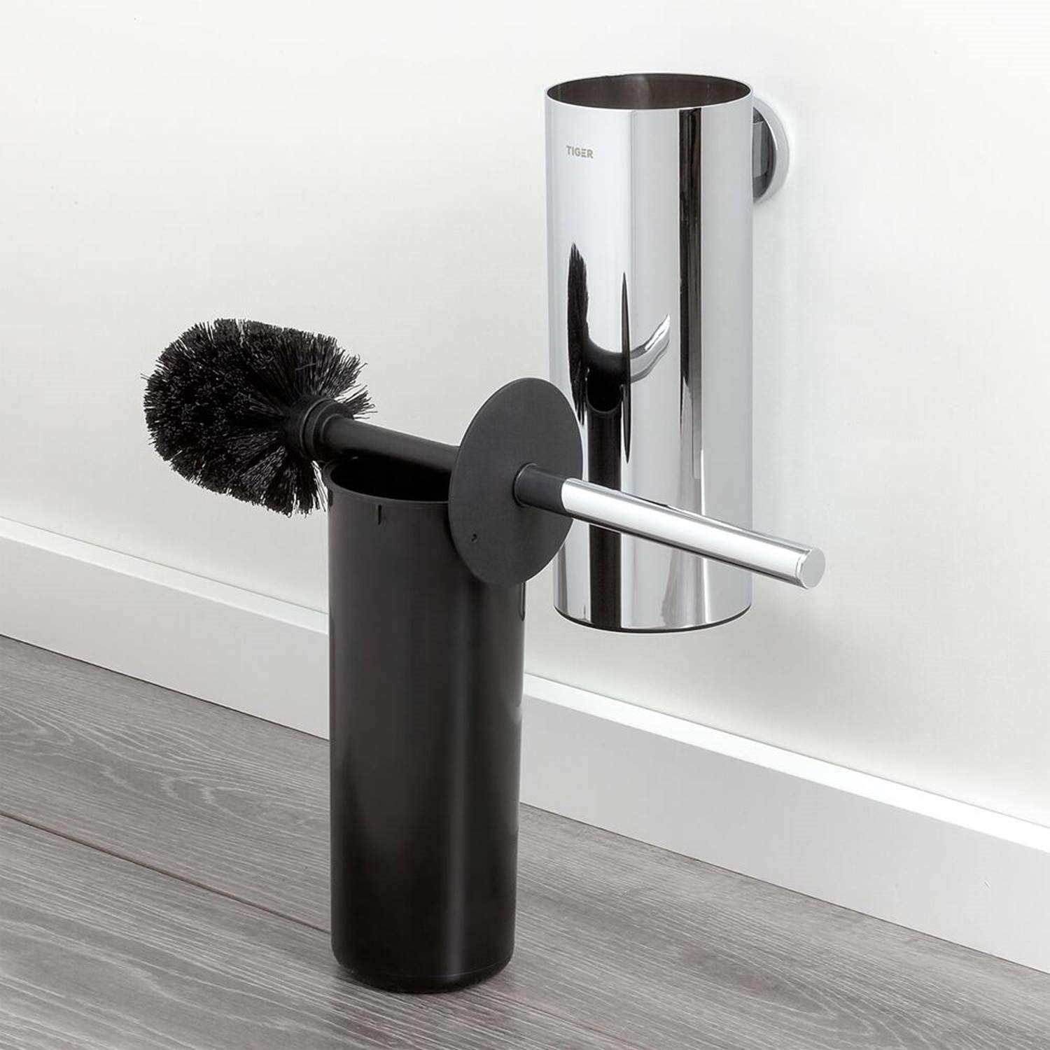 De Tiger Noon toiletborstel met houder wordt geleverd in de kleur chroom en biedt een optimaal gebruikersgemak. Zeker wanneer het om hygiëne gaat, is het belangrijk dat het goed gebeurt. De borstelpot is over de hele lengte voorzien van kunststof materiaal, en kan goed afgesloten worden met de flexibele deksel die aan de toiletborstel zit. De borstelhouder heeft een afmeting van 9x11x38 cm, en weegt 900 gram.