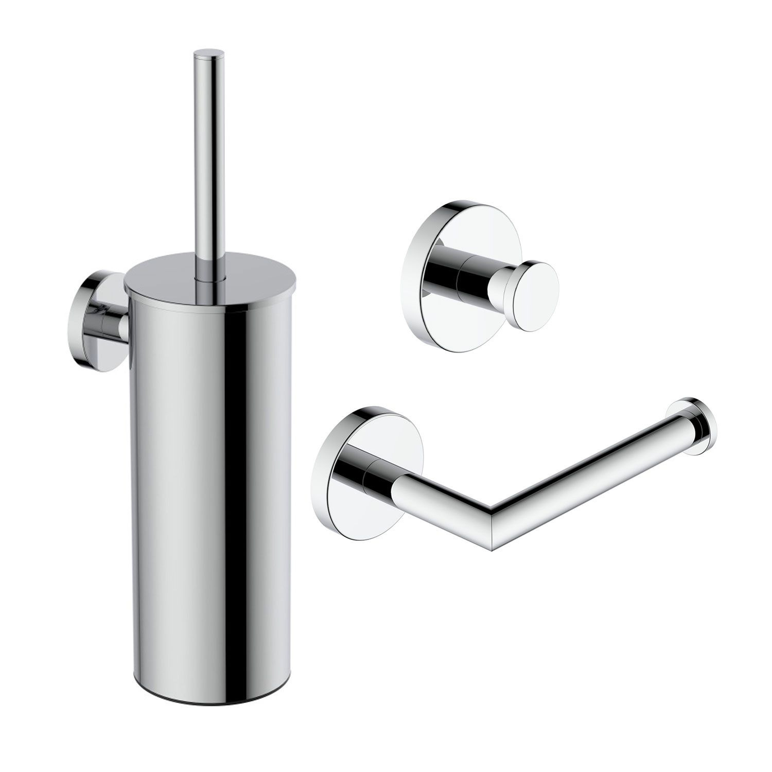 Deze set bestaat uit een toiletborstel toiletrolhouder en een handdoekhaak. Met deze set heeft u alles bij de hand wat u nodig heeft bij een toiletbezoek. De toiletborstel met houder heeft een lengte van 35,2 cm een breedte van 9,2 cm en een diepte van 12 cm. Ook heeft de de houder een uitneembare kunststof binnen poot waardoor u hem altijd gemakkelijk kan reinigen. Bovendien ziet de borstel er door de zwarte borstelkop altijd hygiënisch uit. Verder is de toiletborstel gemaakt van hoogwaardige materialen en monteer je hem eenvoudig aan de wand. De toiletrolhouder is geschikt om 1 rol te houden en is zowel links als rechtsom te plaatsen en heeft hij een breedte van 16,4 cm en een diepte van 8,4 cm. De handdoekhaak is groot en stevig genoeg met een breedte van 5,5 cm om uw handdoek of badjas gemakkelijk aan op te hangen. Door deze mooie en handige combinatie van de Alonzo set maakt u van uw badkamer een geheel.