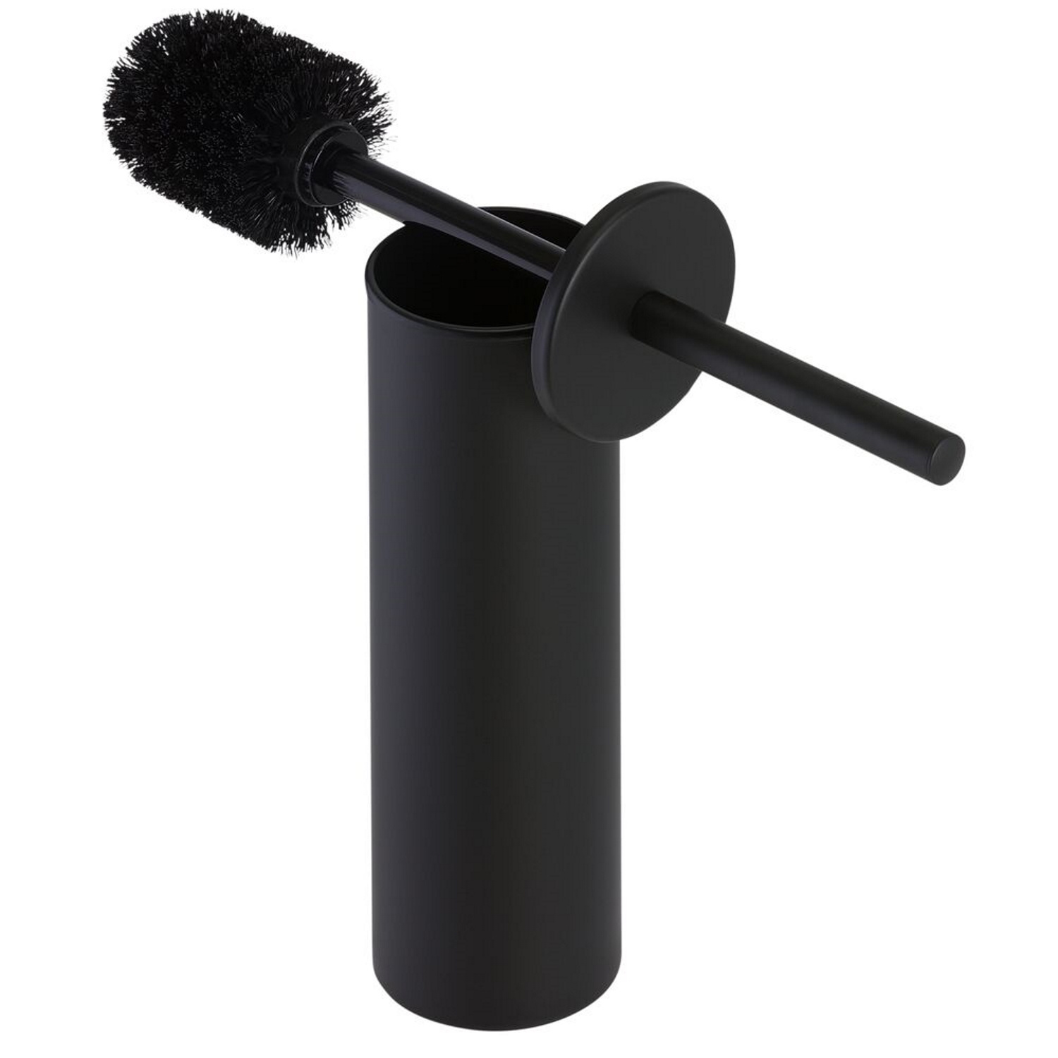De toiletborstel met houder is 37,1 cm hoog en 8,2 cm breed. Hij is van messing in de kleur zwart.