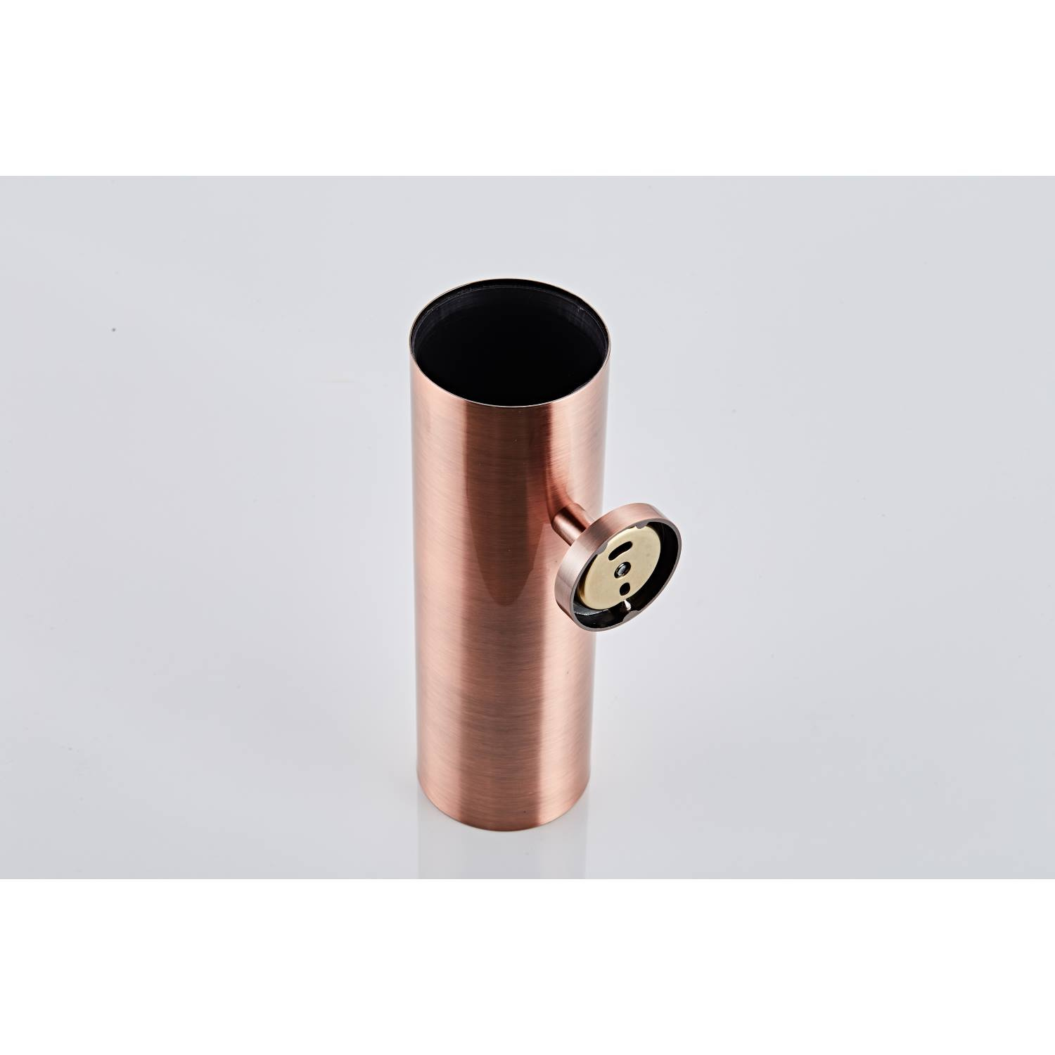 De toiletborstelset van de serie Copper heeft een hoogte van 38.5 cm en een diameter van 8 cm. De toiletborstel bestaat uit een losse borstel met witte kop. Deze kop is van de steel af te draaien. Wel prettig dat dit op den duur vervangen kan worden. De steel rust in de houder die aan de muur bevestigd wordt. De houder is gemaakt van messing ideaal omdat het niet kan roesten of oxideren en dat is erg belangrijk in vochtige ruimtes. Ook heeft de serie meerdere accessoires zodat u uw badkamer kunt combineren met andere elementen uit de serie. Zo voorkomt u kleurverschil in uw accessoires.