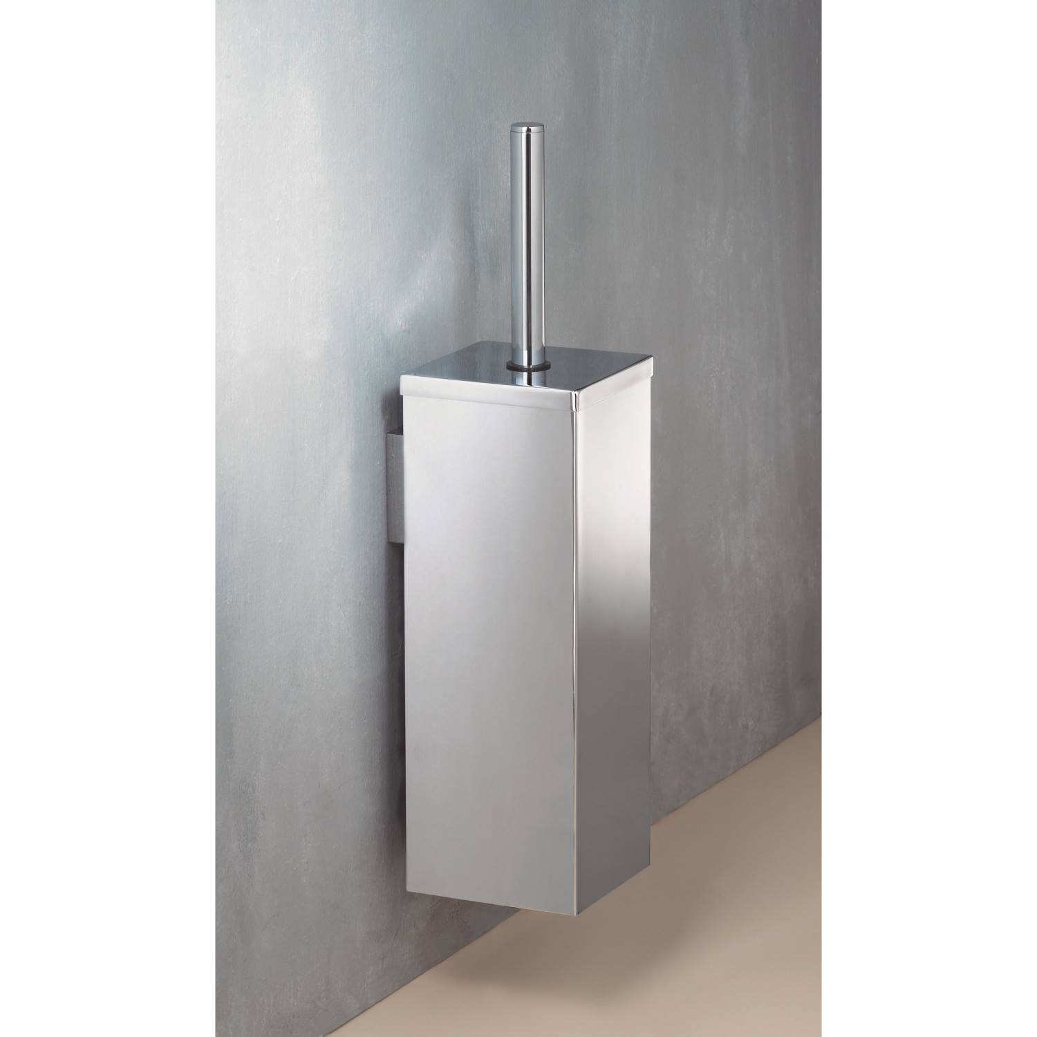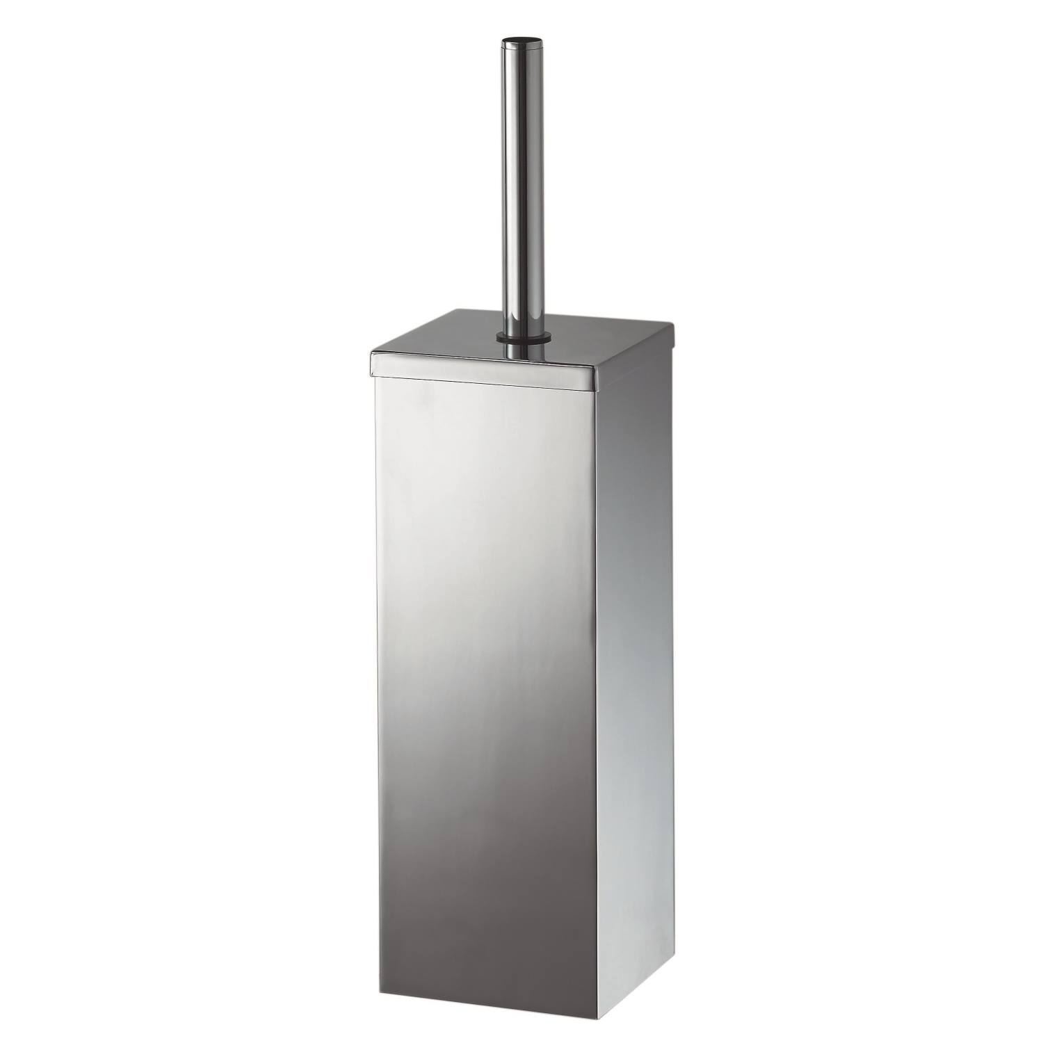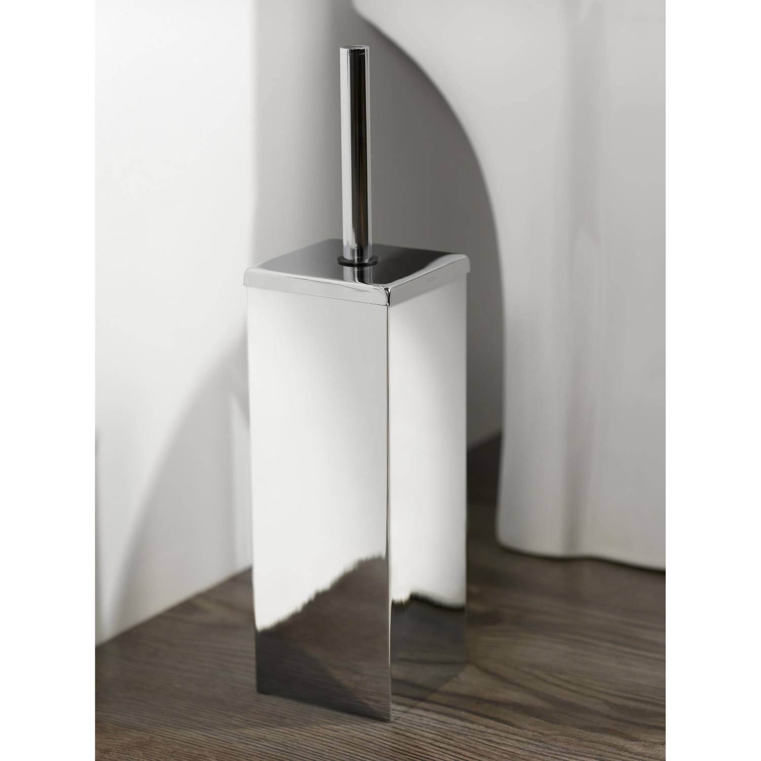 Vrijstaande, vierkante toiletborstelset in de kenmerkende Mezzo-stijl. Geeft uw toiletruimte extra stijl. De set is aan de wand te monteren, maar u kunt hem ook op de grond zetten. Om het schoonmaken makkelijk te maken, heeft de set een binnenpot.