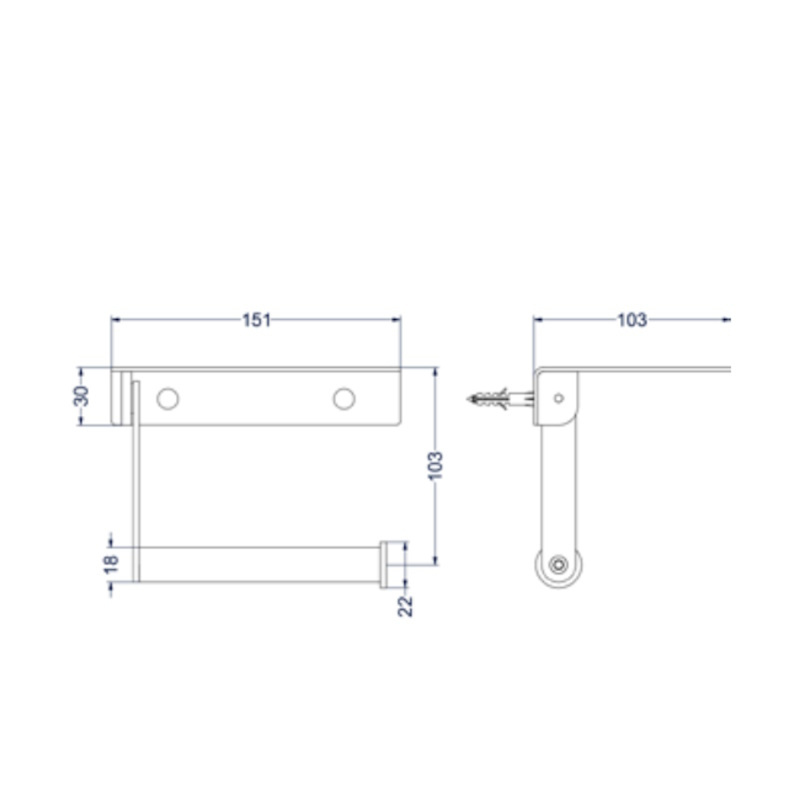 De toiletrolhouder heeft een hoogte van 10,3 cm en een diepte van 10,3 cm. De toiletrolhouder heeft een breedte van 15,1 cm.