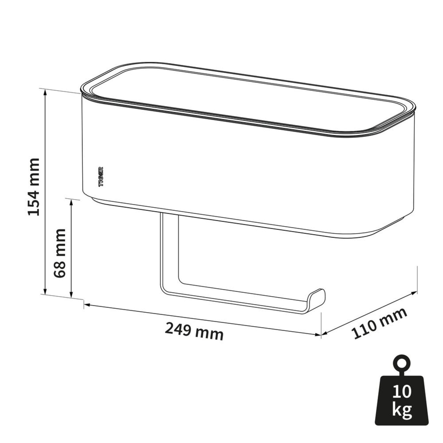 Deze toiletrolhouder van het merk Tiger komt uit de 2-Store serie. Dit accessoire is multifunctioneel door de combinatie van toiletrolhouder en opbergbakje. Perfect voor in uw badkamer!