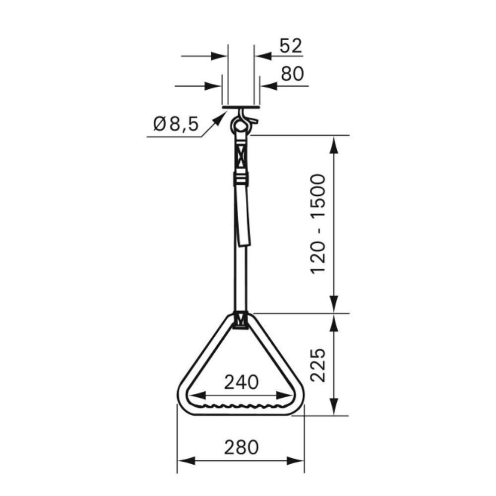 Deze triangel is van het merk Handicare en behoort tot de Linido-serie. De triangel dient aan het plafond bevestigd te worden en biedt ondersteuning bij het opstaan in bed voor mensen die dit om wat voor reden dan ook nodig hebben. Het artikel is voorzien van een nylon band waar de handgreep aan bevestigd is. Deze band is in hoogte verstelbaar, zodat de triangel op iedere gewenste hoogte ingesteld kan worden. De triangel is gemaakt van kunststof en is afgewerkt in een witte kleur.