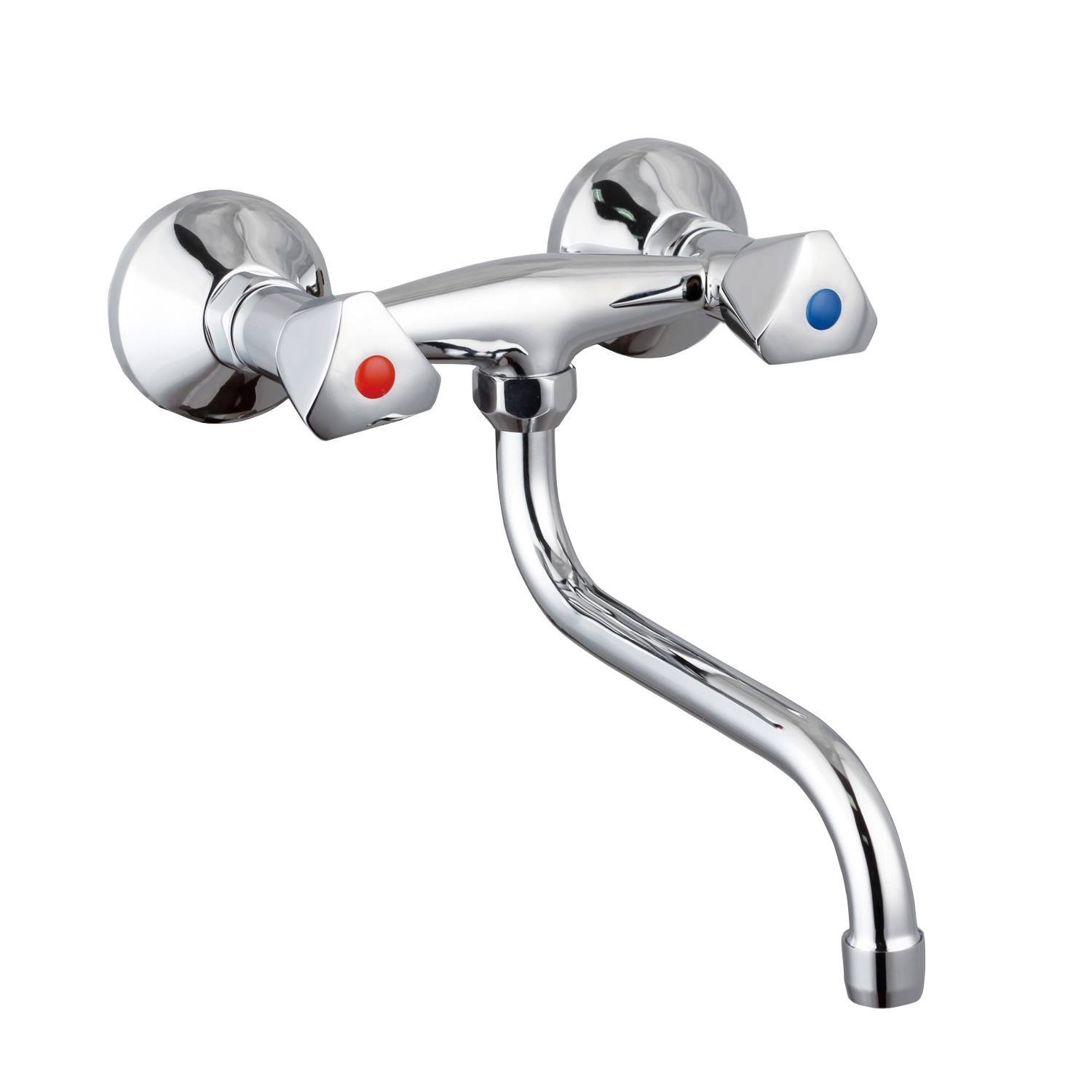 De Cesti keukenkraan van het merk Schutte is gemaakt van messing en heeft een chromen afwerking. Dit wandmodel maakt ruimte vrij rondom uw wasbak voor uw keukengerei of u kunt het vrijhouden om een clean look in de keuken te creëren. De kraan bevat twee grepen waarmee de temperatuur van het water geregeld kan worden. De keukenkraan beschikt ook over een draaibare uitloop. De draaibare uitloop maakt het mogelijk om een dubbele vaat met water te vullen. De mengkraan is 27.6 cm lang en is 21.6 cm breed.