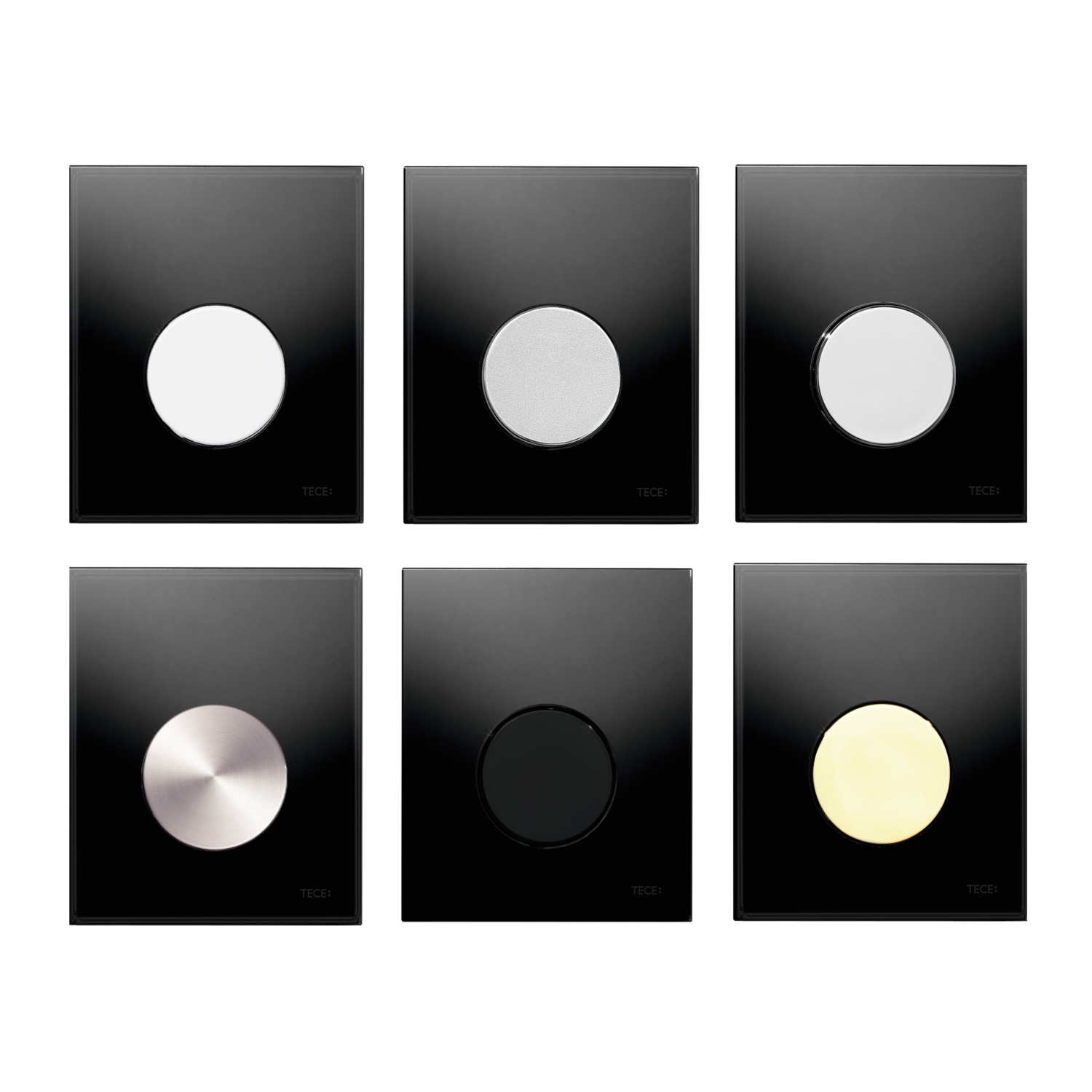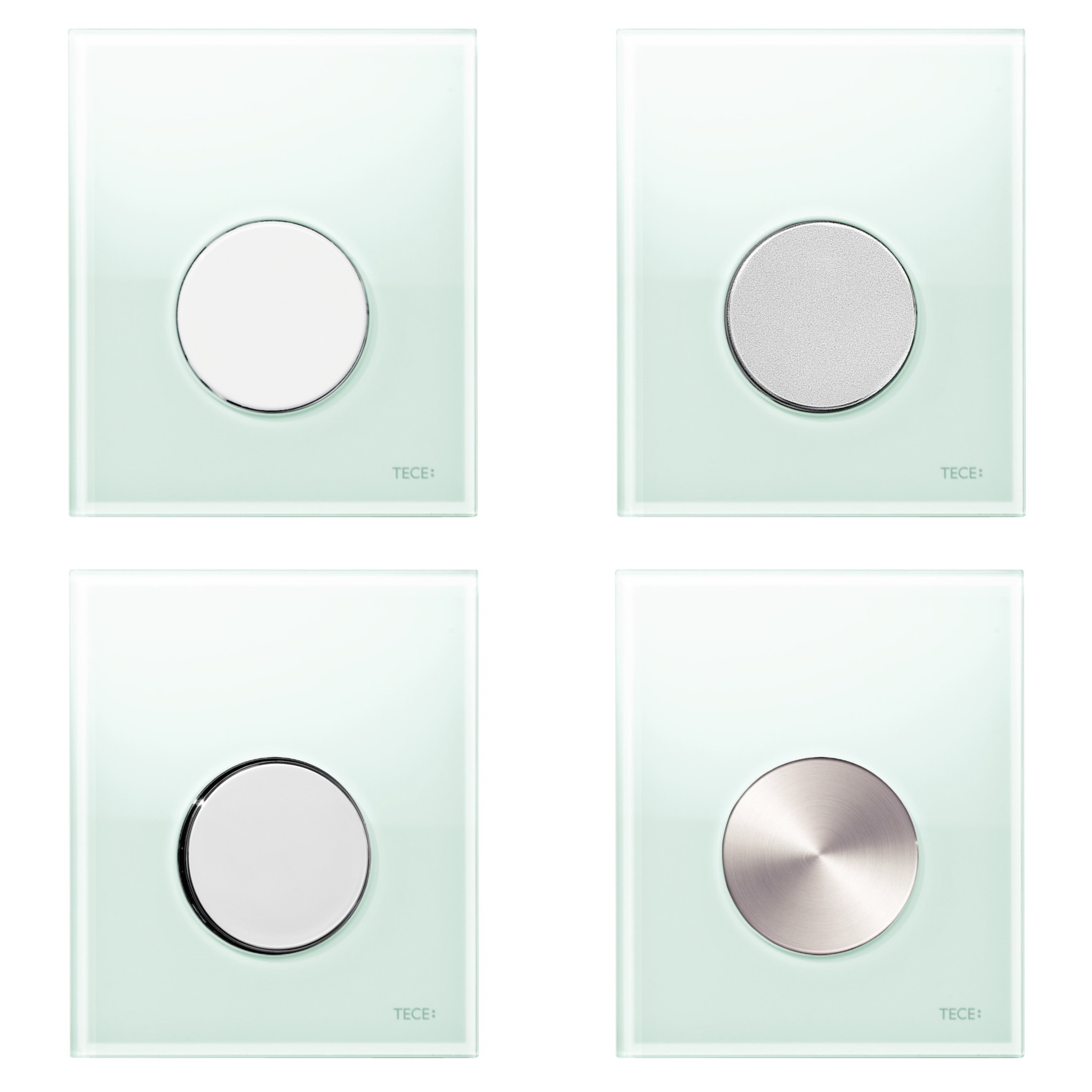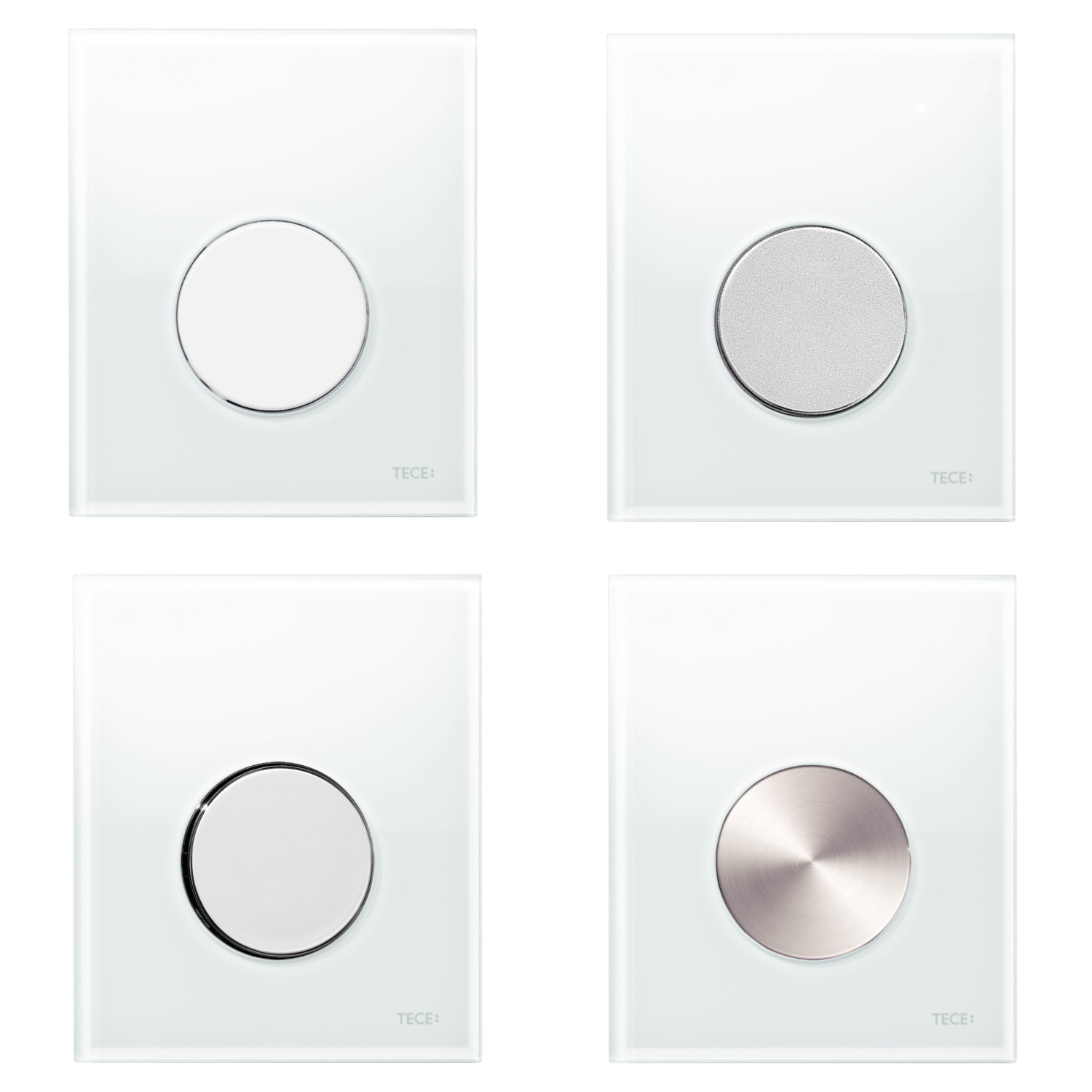 Naast de standaard drukspoelerbehuizing, inlaatgarnituur en het sifon heeft u bij deze urinoir set ook de keuze uit tien verschillende 'Loop' drukplaten van het merk TECE. Deze glazen drukplaten worden geleverd met een cartouche voor de drukspoeler en hebben een breedte van 10,4 cm, een hoogte van 12,4 cm en een diepte van 1,1 cm. U heeft bij de drukplaten de keuze uit een witte, mintgroene en zwarte drukplaat. De bedieningsknoppen zijn verkrijgbaar in de kleuren wit, mat chroom, glanzend chroom, geborsteld RVS (meerprijs van €10,00), zwart en goud (meerprijs van €45,00).