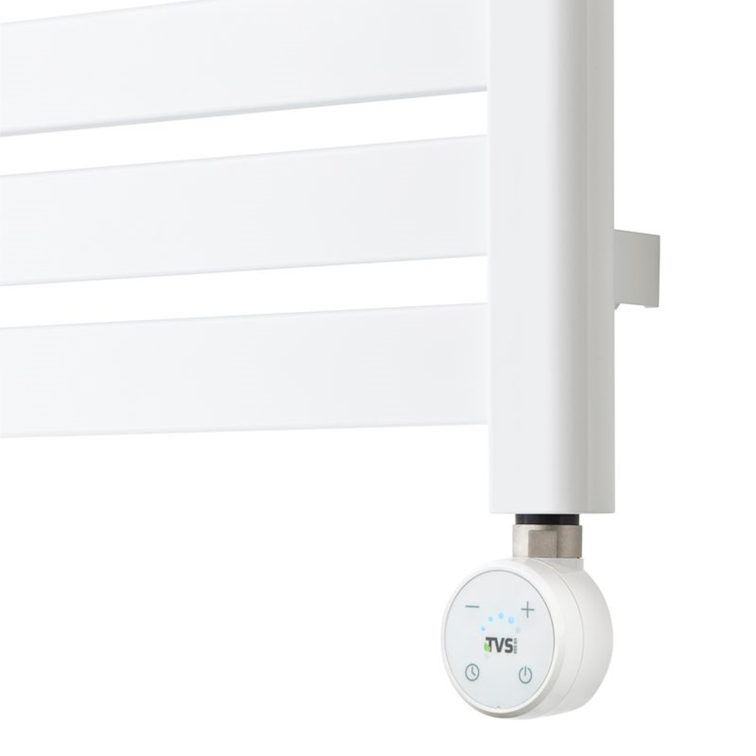 Bent u op zoek naar een verwarmingselement voor bij uw designradiator? Dan is dit verwarmingselement van TVS uit de serie EL 300 met timer echt iets voor u. Hij is wit van kleur. Dit verwarmingselement heeft een drukknop voor aan- en uitzetten. Door op de plus en min knoppen te drukken kunt u de gewenste temperatuur regelen. Ook zit er een timer op, zodat u zelf kunt bepalen wanneer hij verwarmt en wanneer hij uit gaat. Hij heeft een capaciteit van 300 Watt.