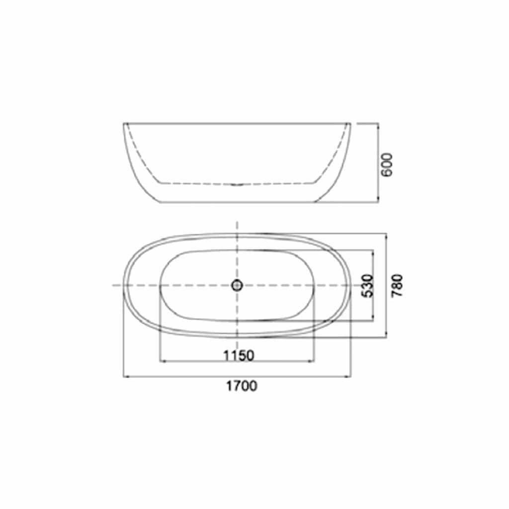 Het bad is 170cm lang en 78cm breed, genoeg om gezellig met zijn tweeën in te zitten. De afvoer zal niet in de weg zitten want die zit netjes in het midden. De rand van het bad is 3cm breed. Er zit overigens een bad afvoer bij het bad.