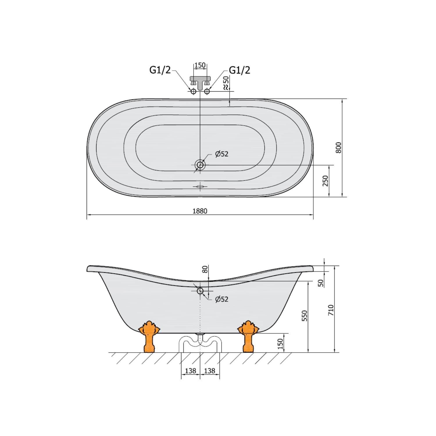 De witte poten maken dit vrijstaande bad echt af. Badpoten hoeft u er dus niet meer bij te bestellen. U heeft nog wel een afvoerplug nodig en een badafvoer.