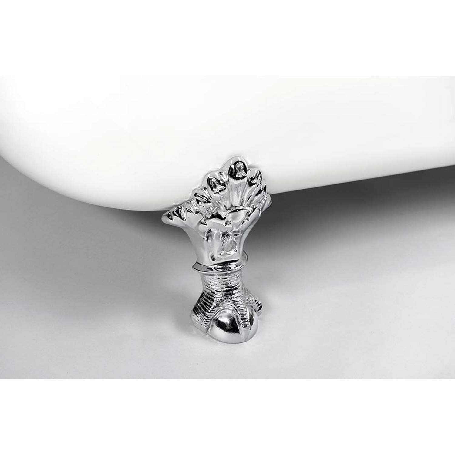 De chromen poten maken dit vrijstaande bad echt af. Badpoten hoeft u er dus niet meer bij te bestellen. U heeft nog wel een afvoerplug nodig en een badafvoer.