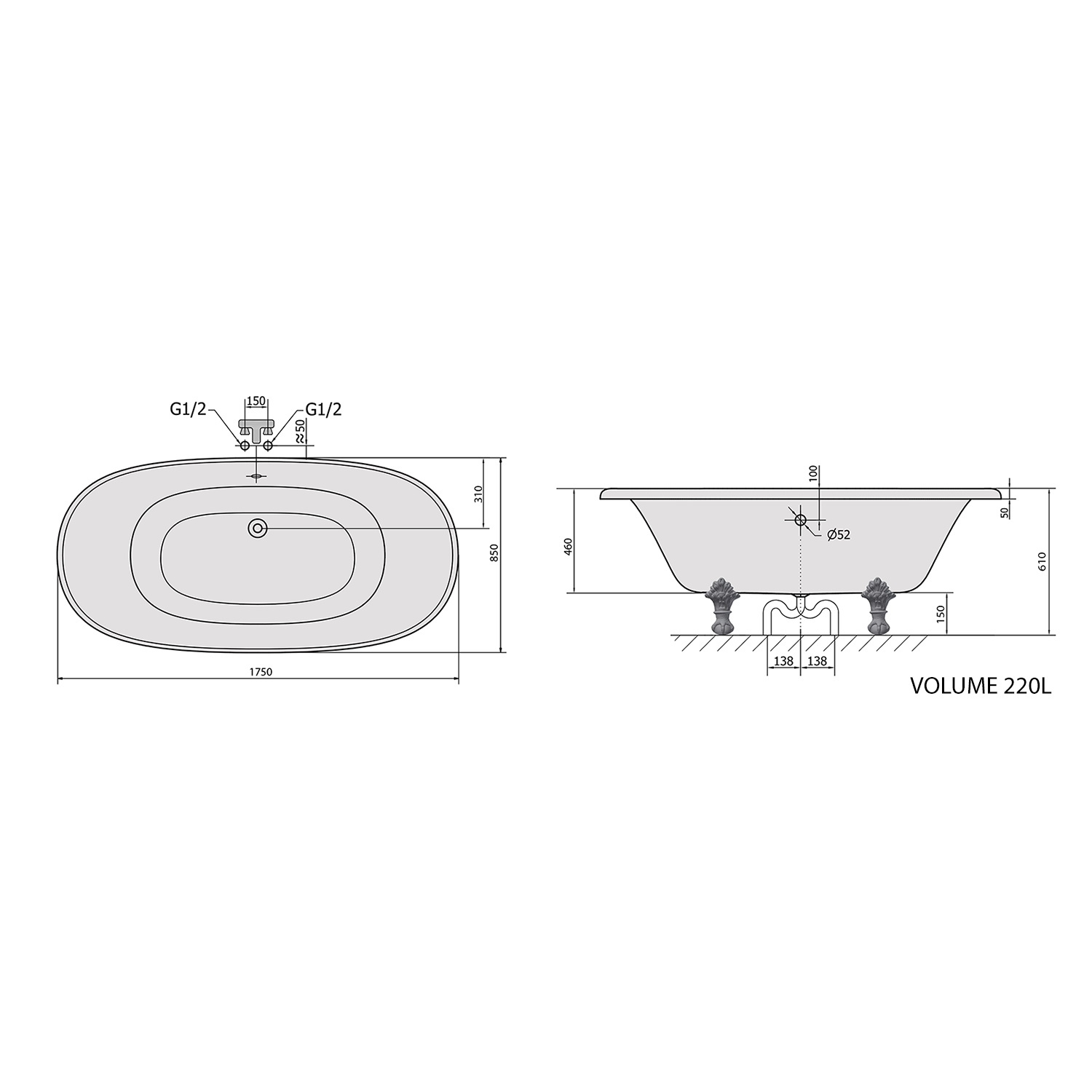 De bronzen poten maken dit vrijstaande bad echt af. Badpoten hoeft u er dus niet meer bij te bestellen. U heeft nog wel een afvoerplug nodig en een badafvoer.