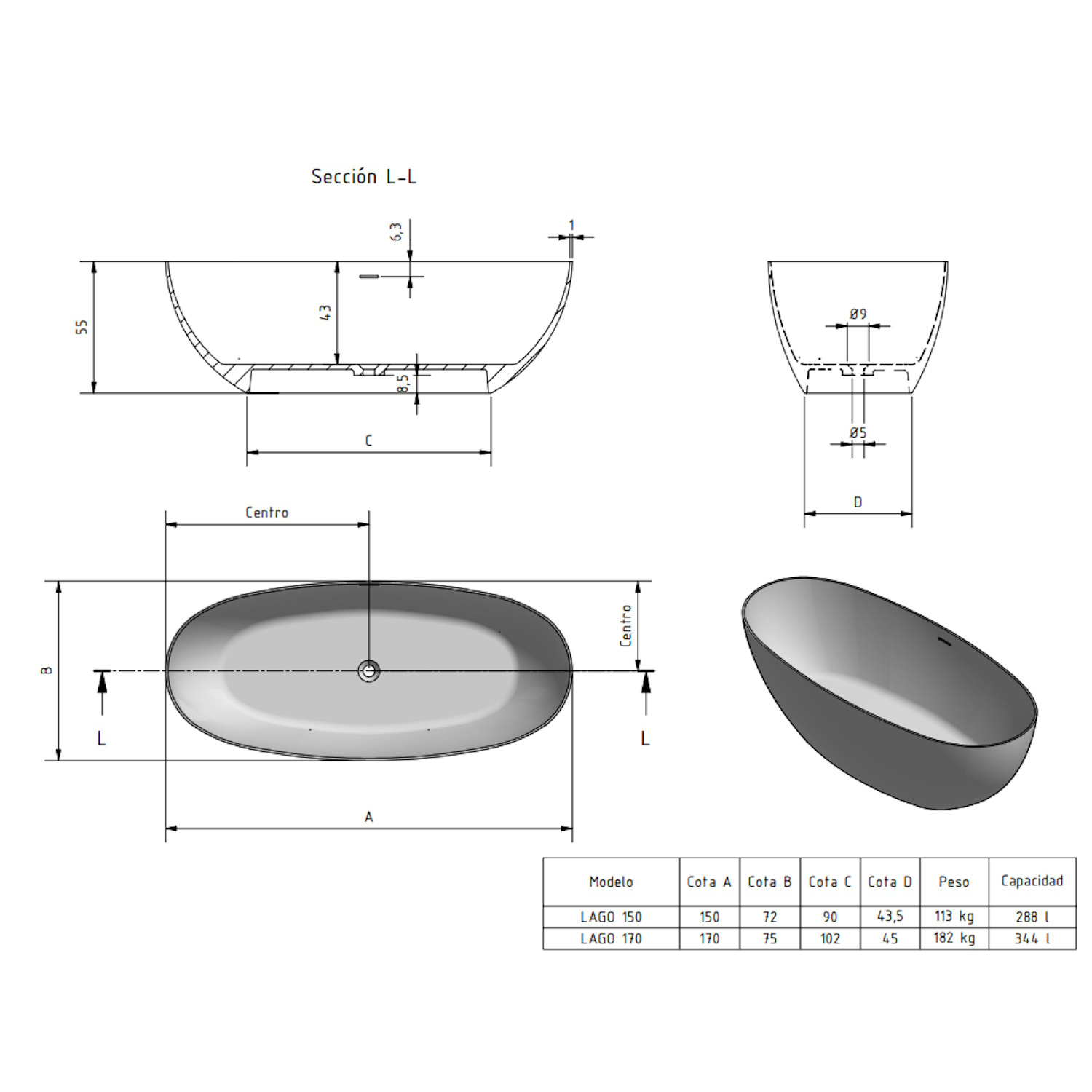 Dit prachtige ligbad van het merk Zenon komt uit de serie Lago. Lago is een ligbad met een ovaal ontwerp dat comfort uitstraalt en is ontworpen om de aandacht te trekken in de badkamer. Het ontwerp is gemaakt van solid Surface wat erg praktisch en hygiënisch is. Het ligbad heeft een matte afwerking en een prachtige grijze kleur. Dit bad is een klassieker en past perfect in elke badkamer.