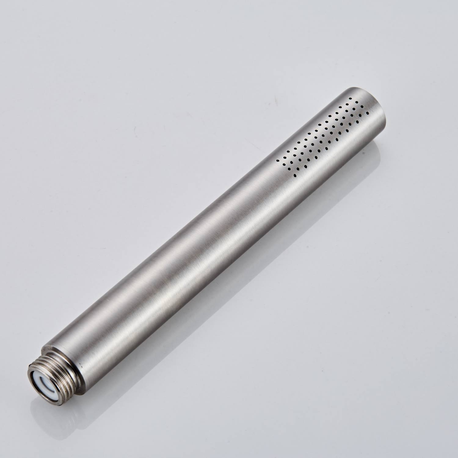 Bij een vrijstaande badkraan hoort een handdouche. Deze is, net als de badkraan, gemaakt van 304 RVS. Een stevig materiaal wat zeer goed in natte ruimtes gebruikt kan worden. De handdouche vorm is gelijk als de vorm van de badkraan, zeer elegant en stijlvol. De handdouche is voorzien van siliconen sproeigaatjes. Deze zijn eenvoudig te ontkalken.