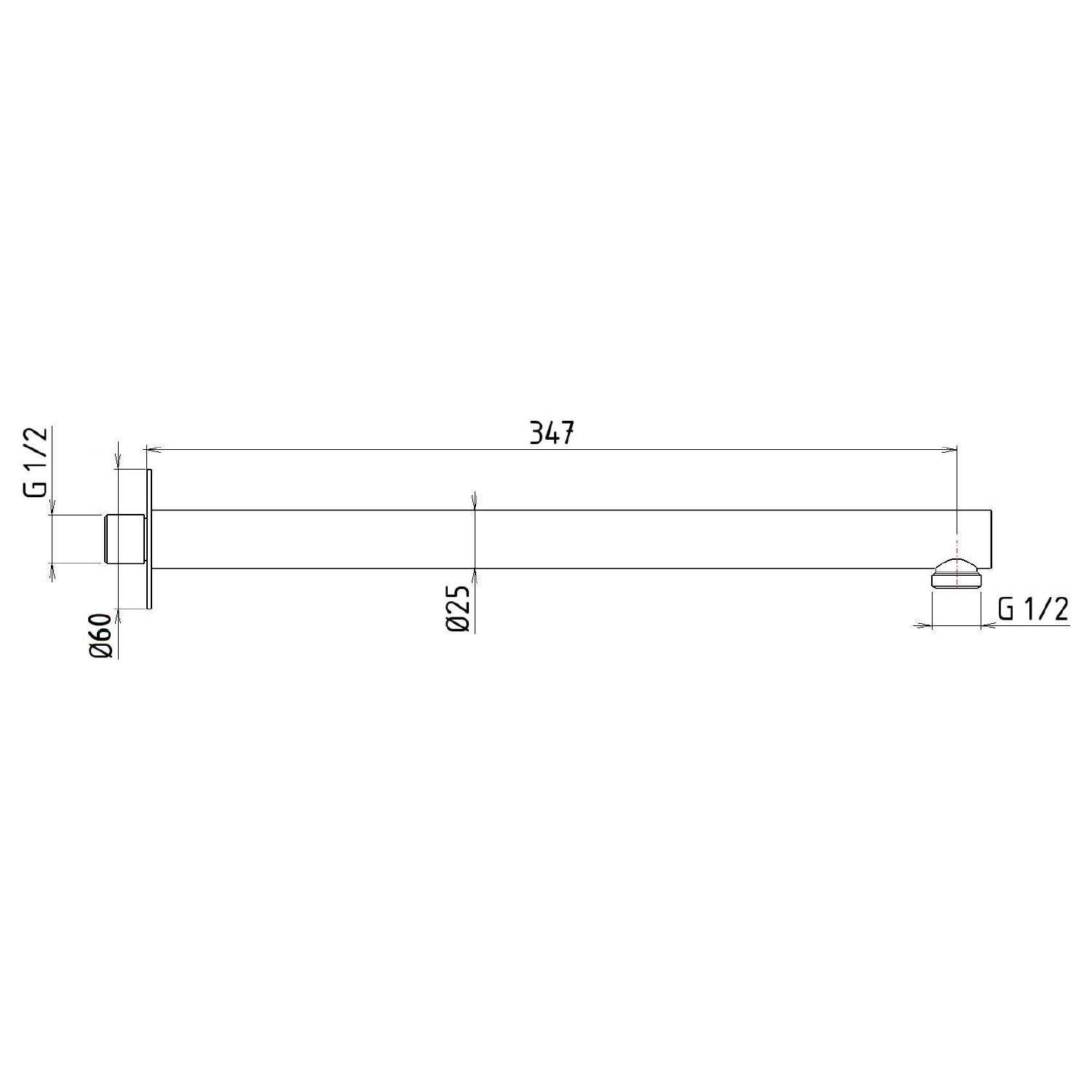 De arm heeft een diameter van 2.5 cm en een lengte van 34.7 cm. De rozet heeft een diameter van 6 cm en het aansluitpunt is 1/2"