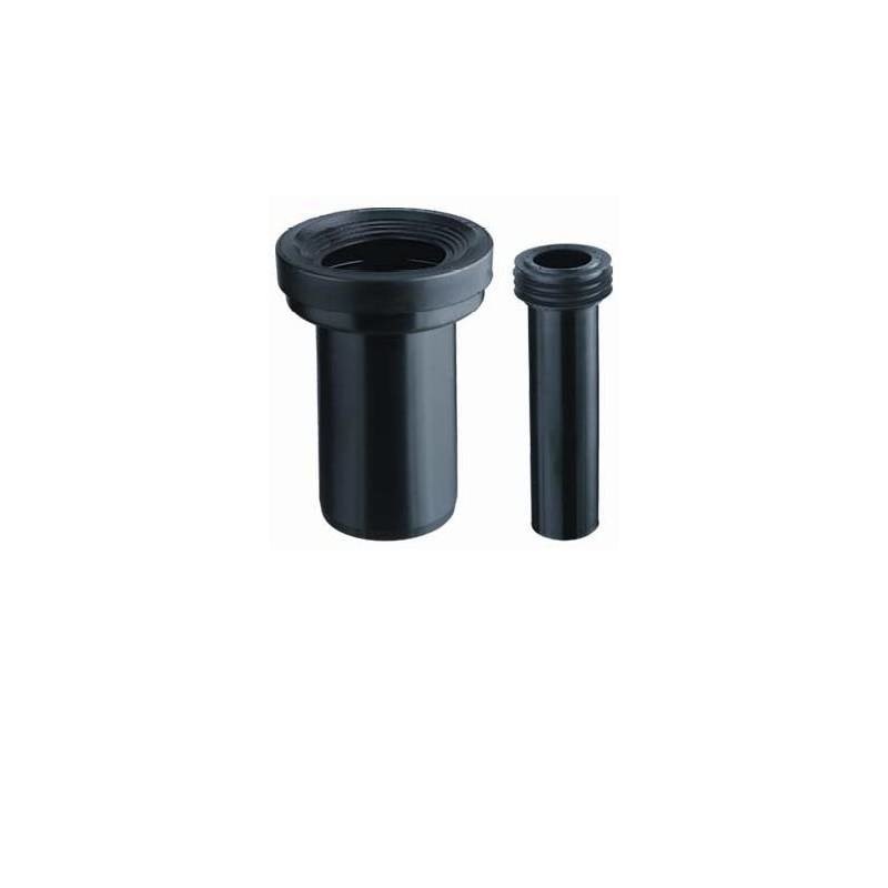 Wandcloset aansluitset 90-110 180mm bestaande uit: -Verlengpijp 110-90, lengte 180mm inclusief manchet -Verlengpijp 55mm met rubber manchet lengte 180mm -2 stuks ringen -2 stuks M12 moeren -2 stuks chroom afdekkappen