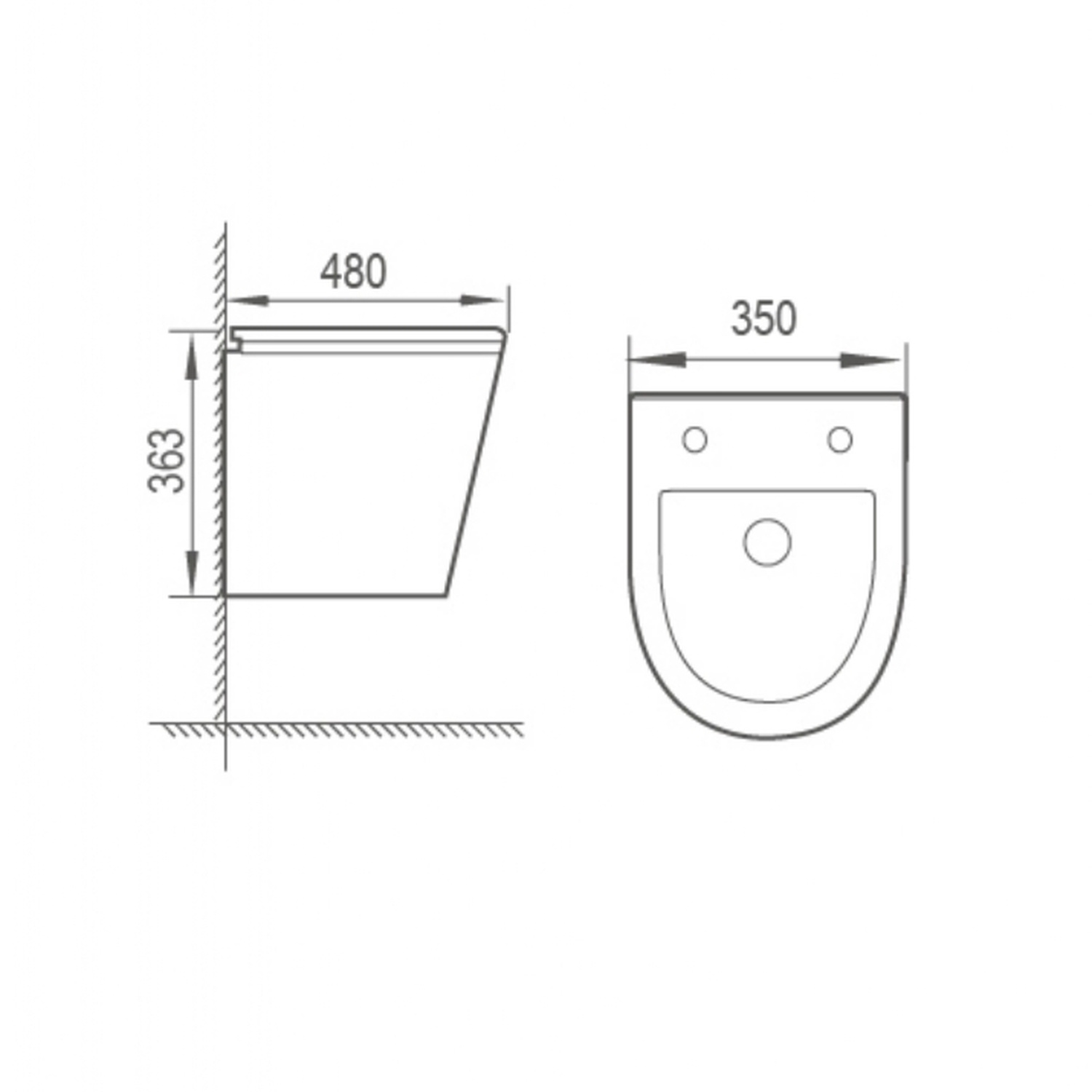 De ophang punten van de pot hebben een h.o.h.van 18.5 cm en de bril h.o.h. van 18 cm. De pot is gemaakt van keramiek in de kleur glanzend wit en heeft de volgende afmetingen 48x35x36 cm (LxBxH)