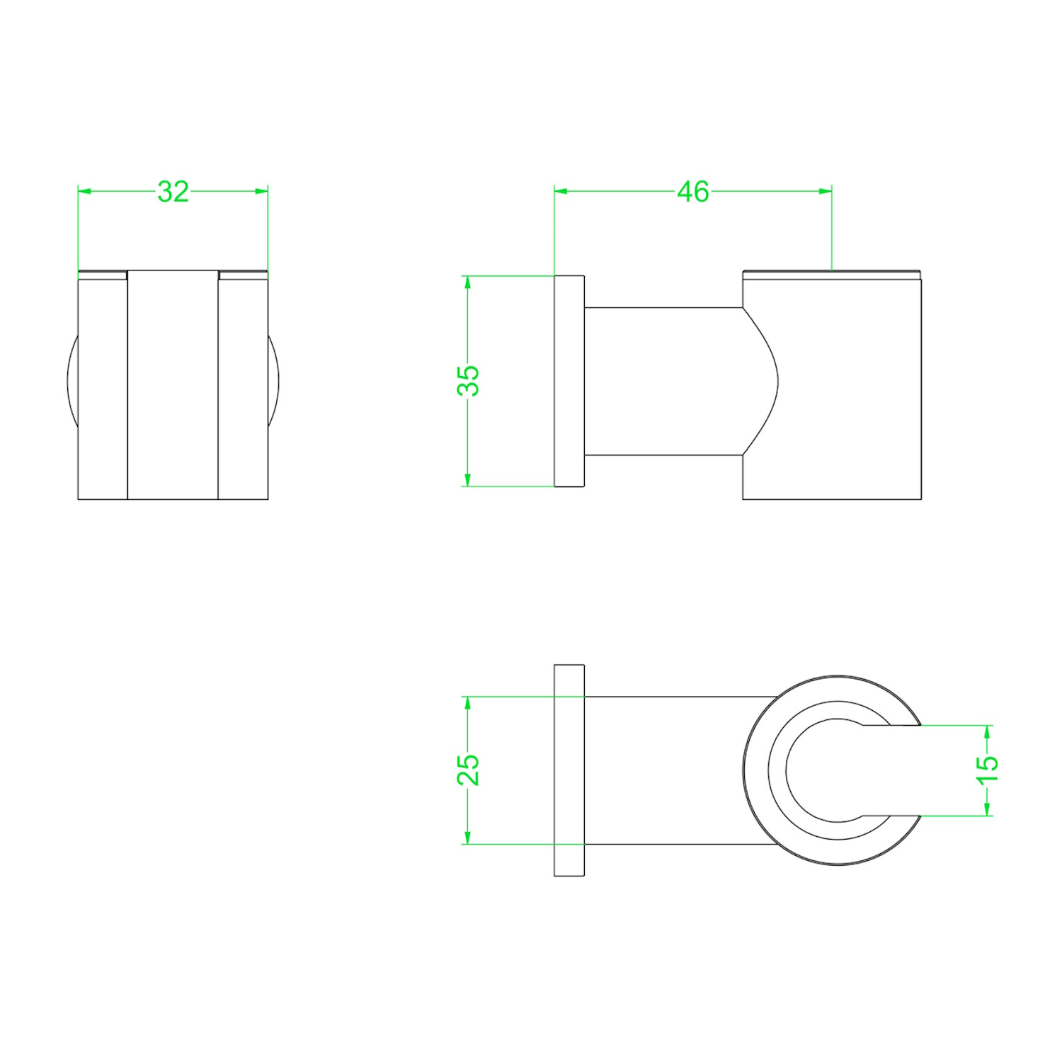 De houder heeft een diepte van 4,6 cm en een breedte van 3,2 cm.